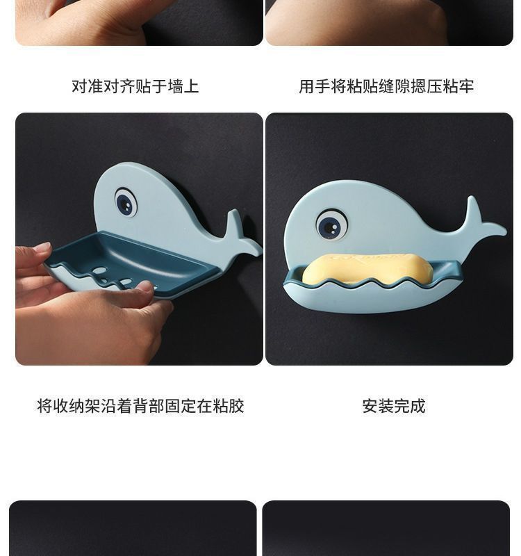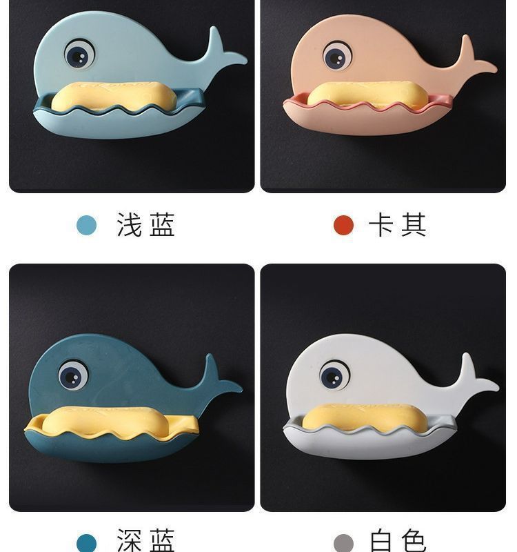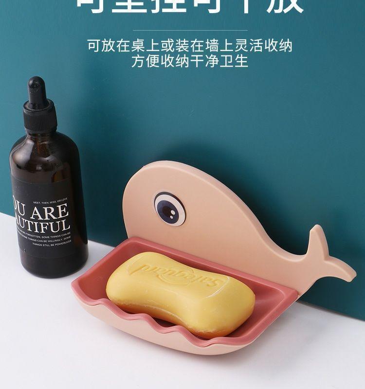 Jabonera con forma de ballena, bonita jabonera con ventosa para pared, sin perforaciones, para baño.