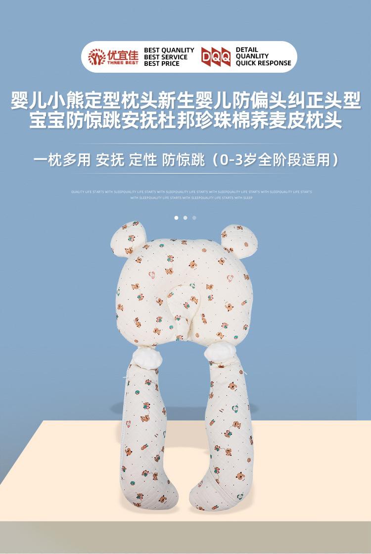 Almohada con forma de osito para bebé recién nacido, corrector de cabeza anti-desviación, tipo de cabeza, anti-sobresalto, calmante, Dupont Pearl