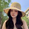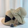 Sombrero de Pescador de Paja Tejida Estilo Hepburn de Seda Brillante para Mujer, Sombrero de Paja con Lazo de Moda Veraniega, Sombrero de Cubo Parasol Versátil de Moda