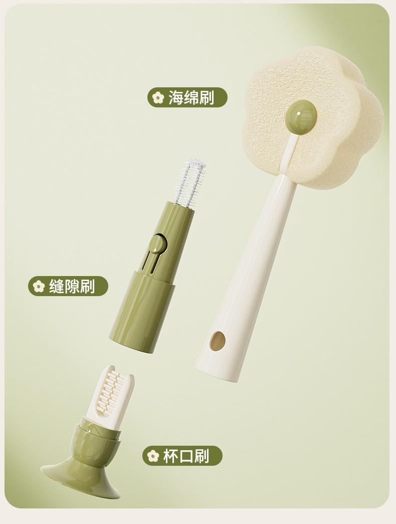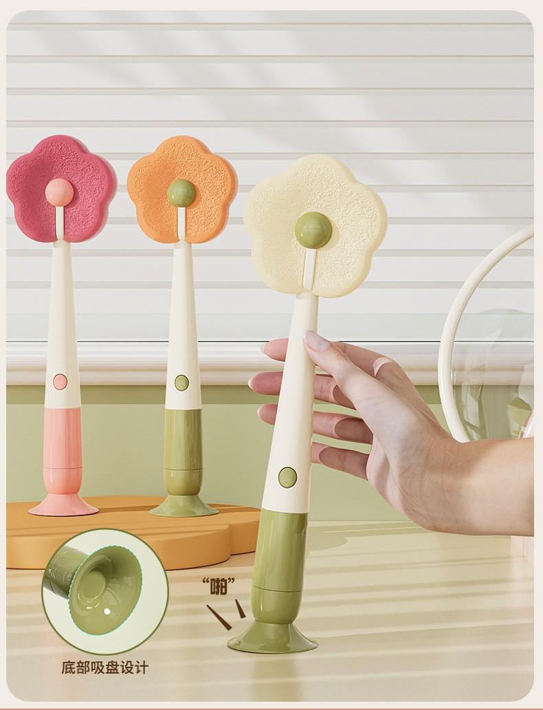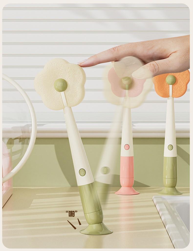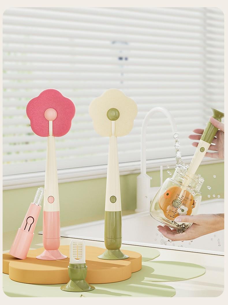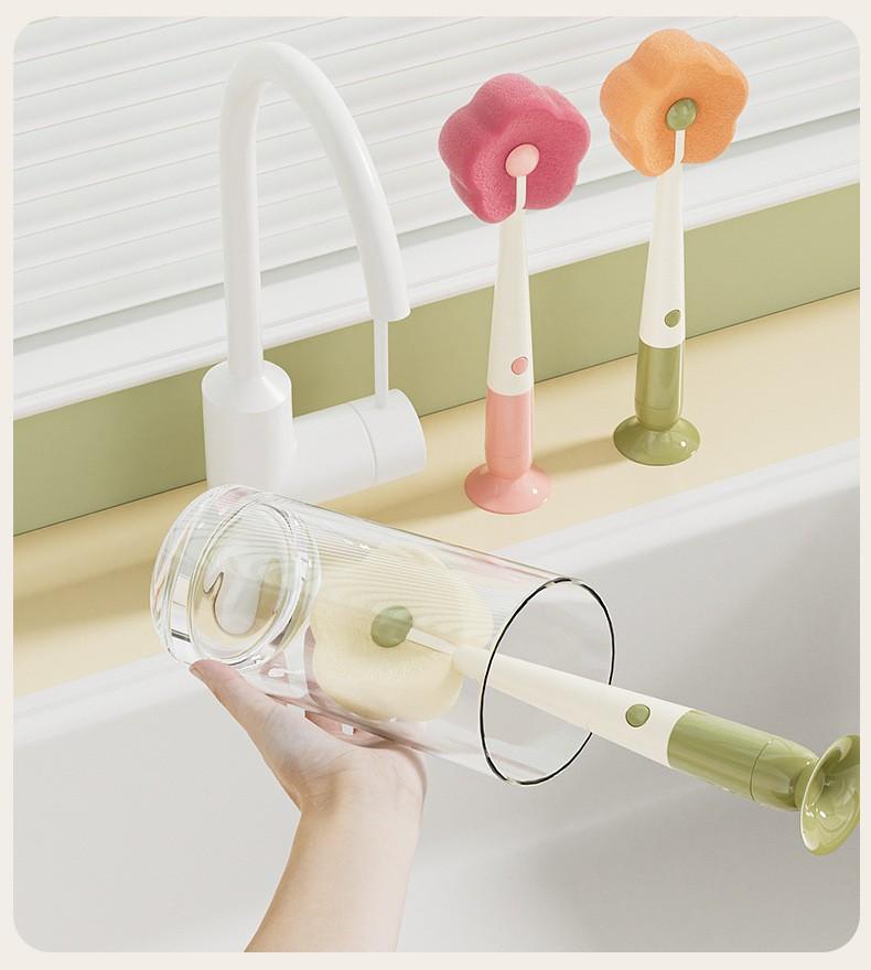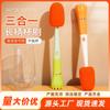 Cepillo con Ventosa Hogar Cocina Tres en Uno Mango Largo Lavado de Biberón Vaso Contenedor Cepillo de Esponja Cepillo de Limpieza Portátil