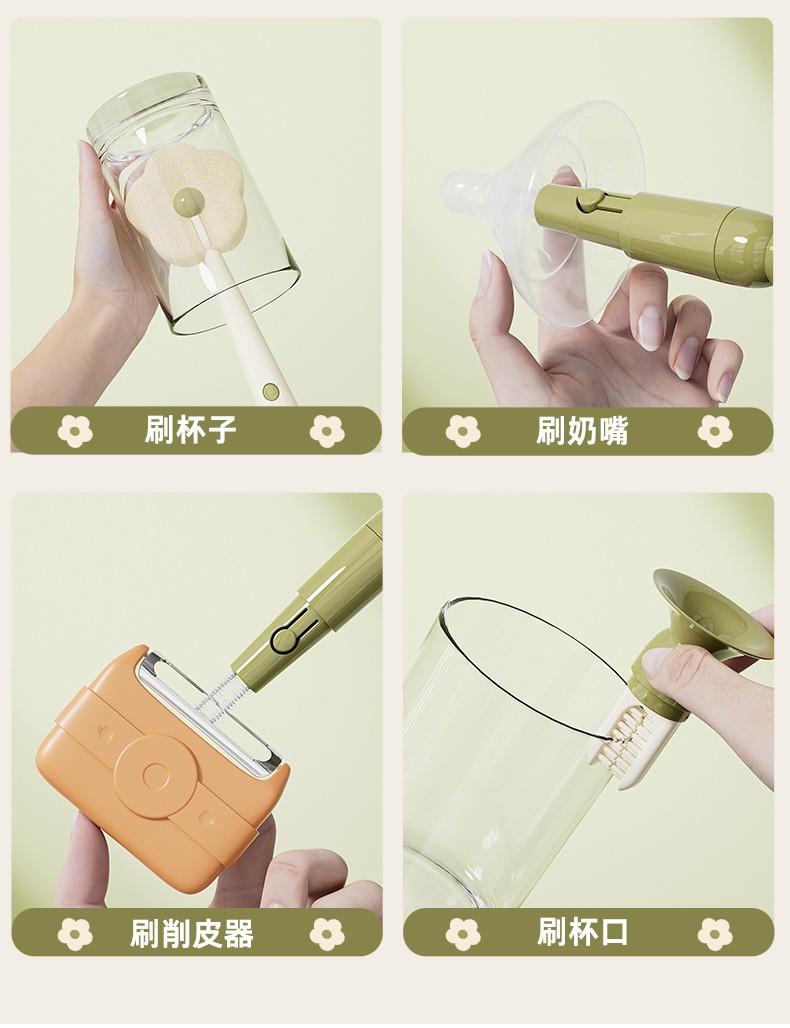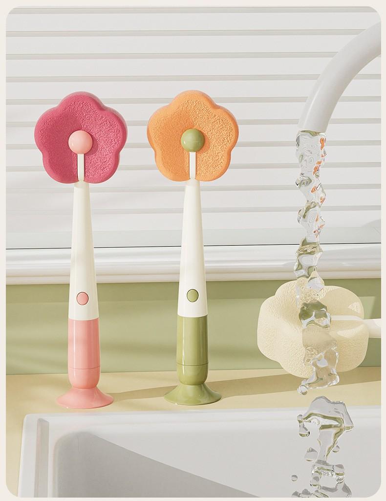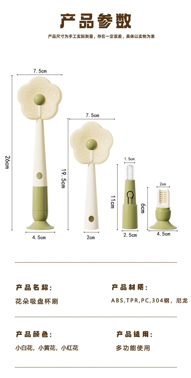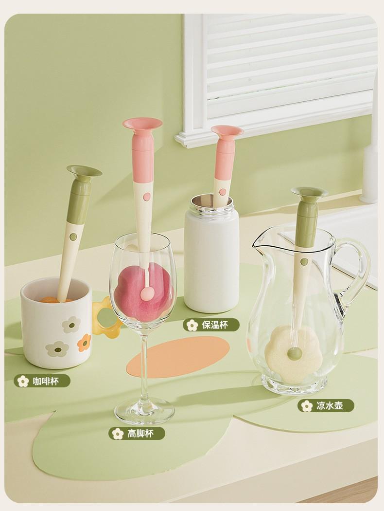 Cepillo con Ventosa Hogar Cocina Tres en Uno Mango Largo Lavado de Biberón Vaso Contenedor Cepillo de Esponja Cepillo de Limpieza Portátil