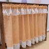 Cortina Americana de Café Cortina Corta Media Cortina Sin Perforaciones Cortina de Puerta Doble Capa Gasa de Cáñamo Cortina de Encaje Estilo Tela Cortina de Gasa Cortina de Agua