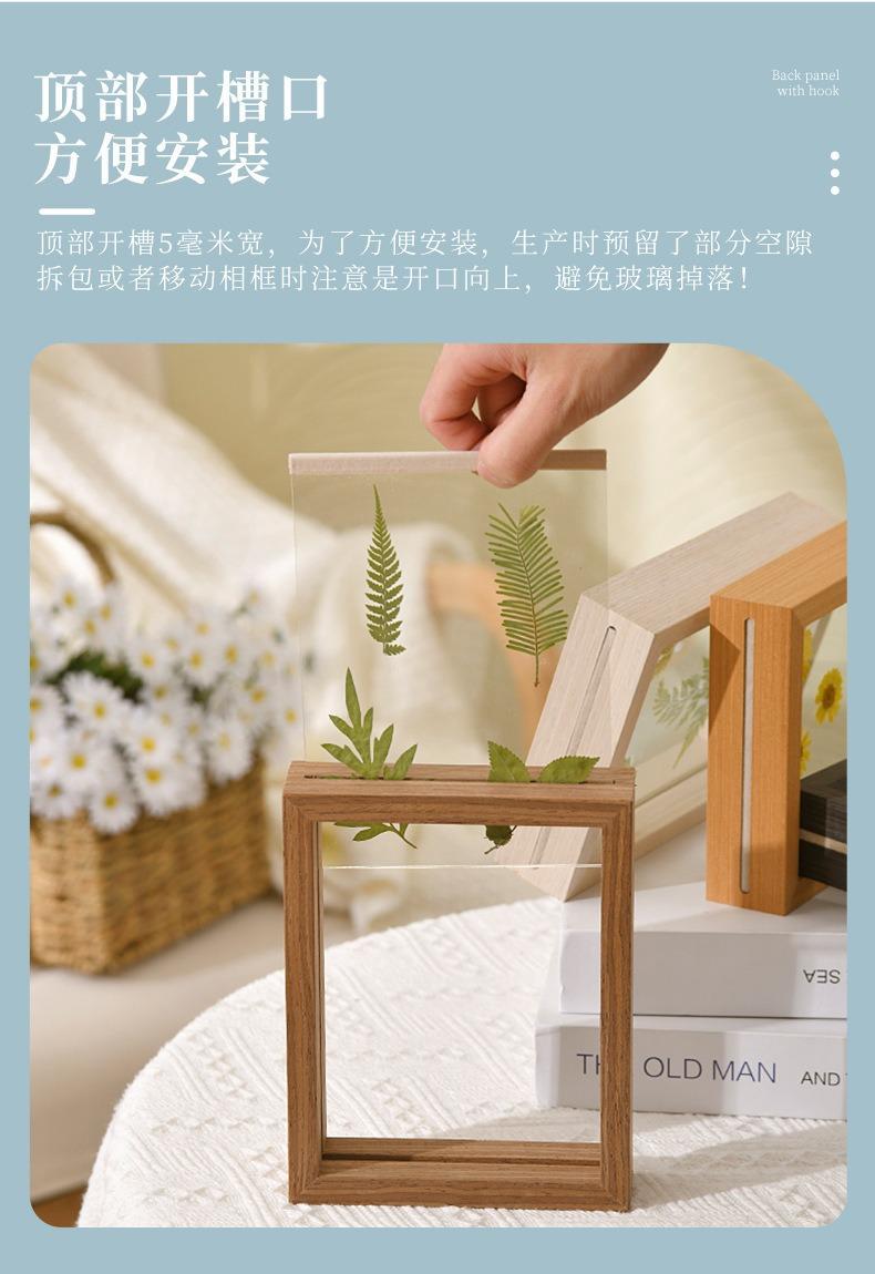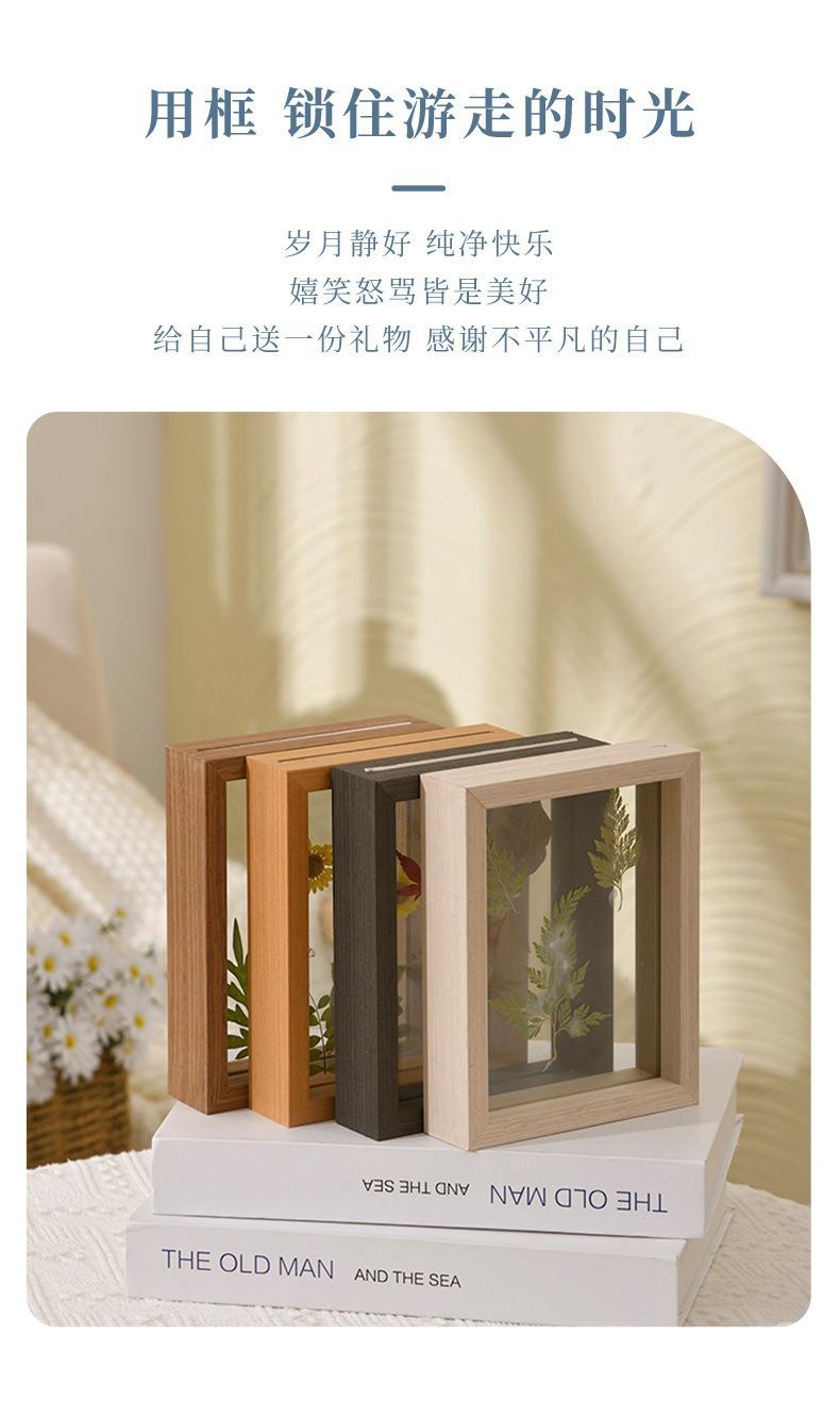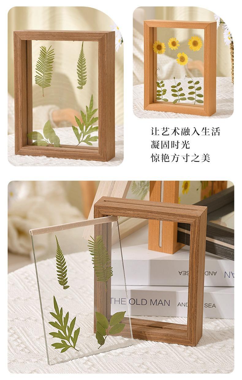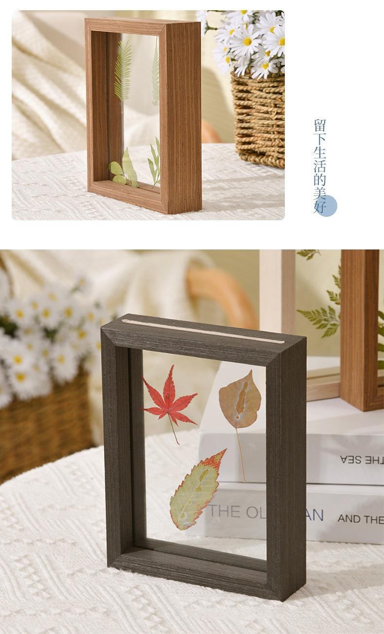Marco de Fotos de Madera Transparente Simple Creativo Doble Cara Vidrio Orgánico Planta Espécimen Animal Marco de Fotos Color Madera Pintura Estéreo