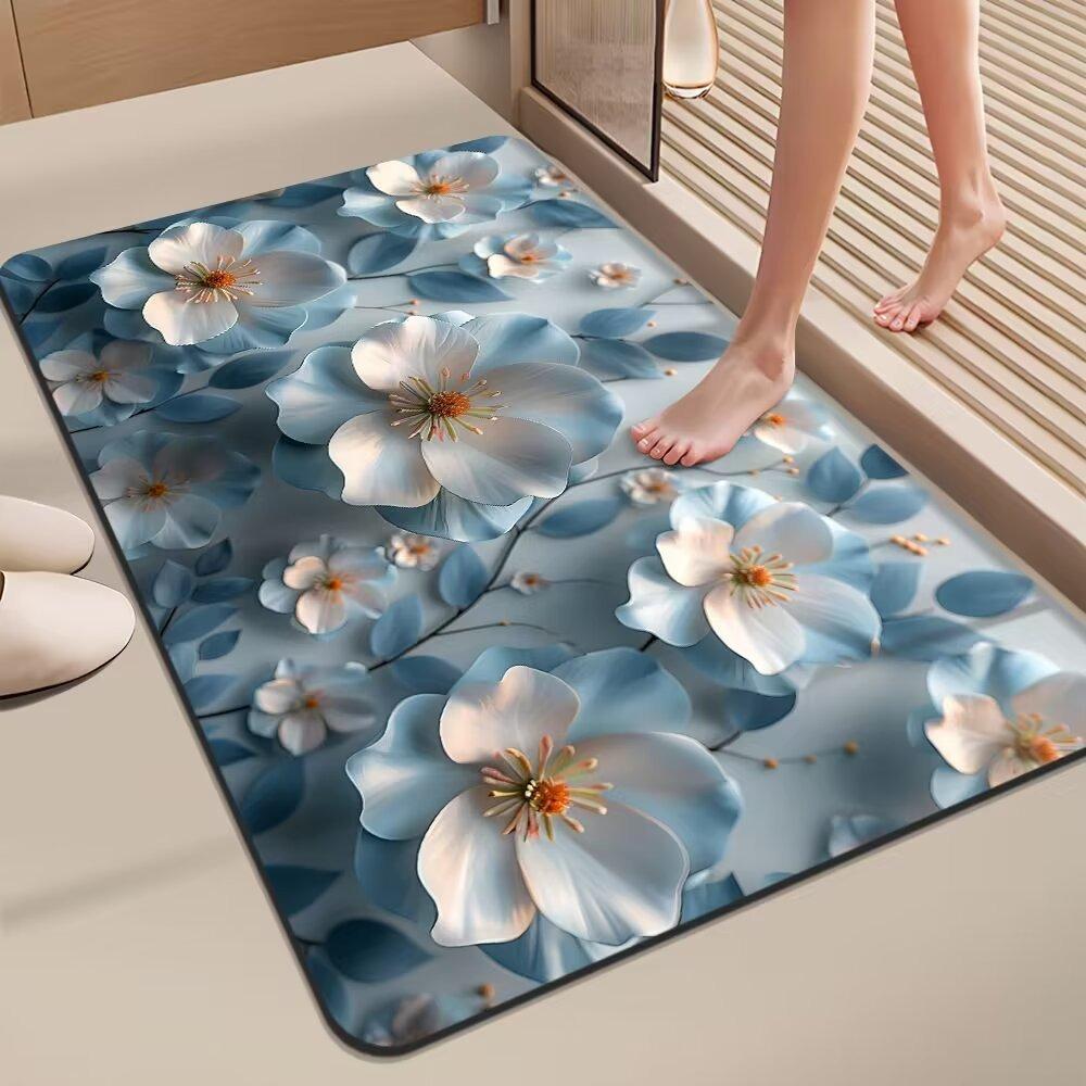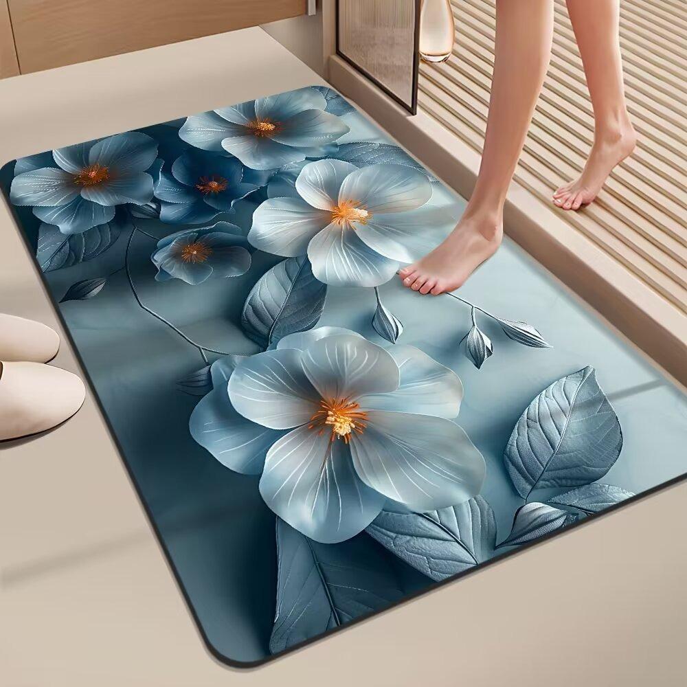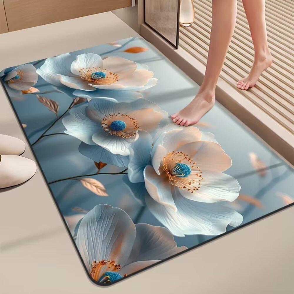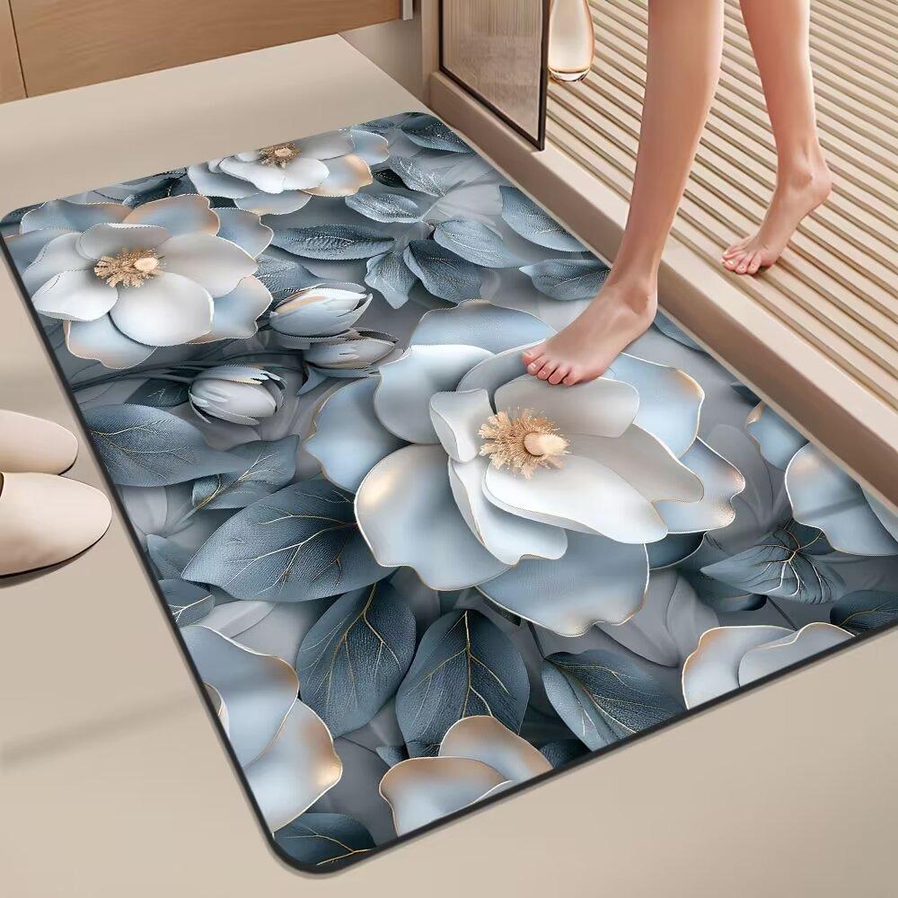 Tapete de Diatomeas con Flor 3D para Puerta de Baño Absorbente Antideslizante Baño Tapete Antideslizante Lavabo Tapete Antimanchas