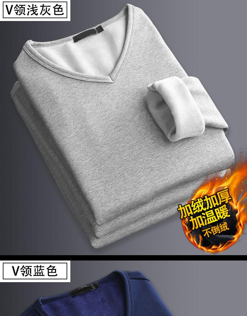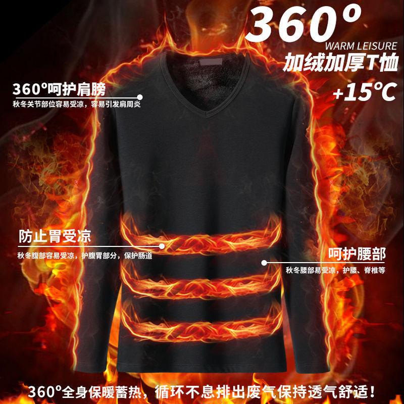 Compra Otoño e Invierno Forrado de Felpa Engrosado Terciopelo Interior Camiseta de Manga Larga para Hombre Simple Trendy Camiseta Base Cuello en V Top Cálido al por mayor en Joom.pro