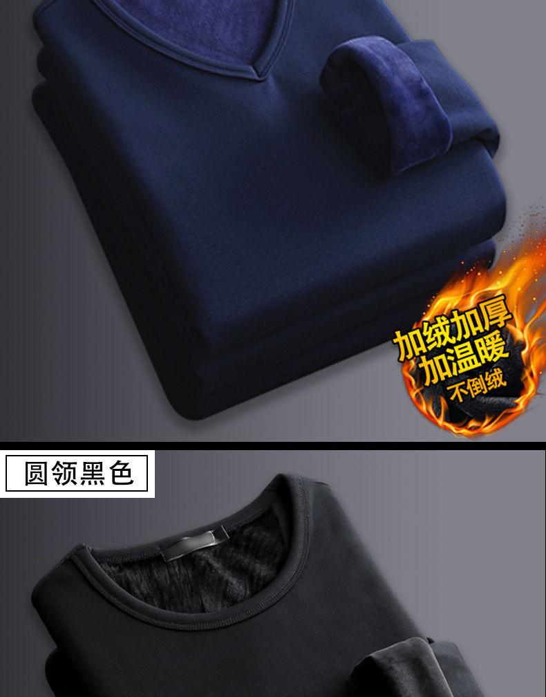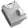 Otoño e Invierno Forrado de Felpa Engrosado Terciopelo Interior Camiseta de Manga Larga para Hombre Simple Trendy Camiseta Base Cuello en V Top Cálido