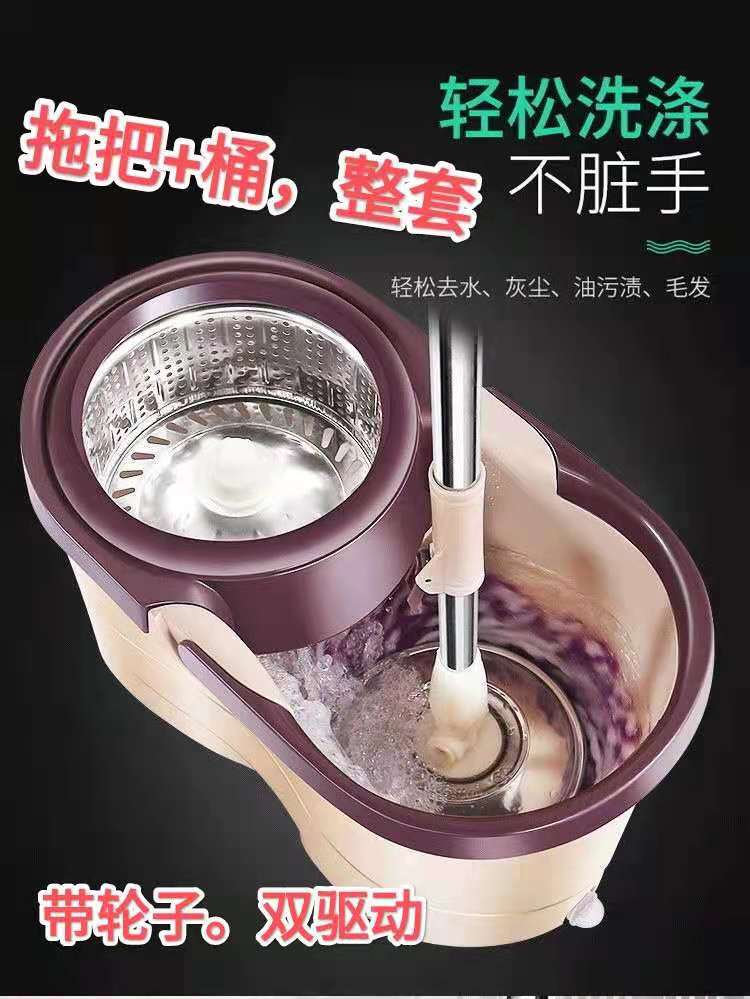 Cubo de Mopa de Doble Transmisión Engrosado Giratorio de Acero Inoxidable Mopa de Secado Mopa Doméstica Manos Libres Húmedo y Seco