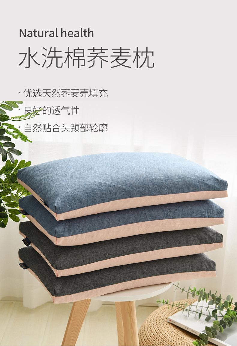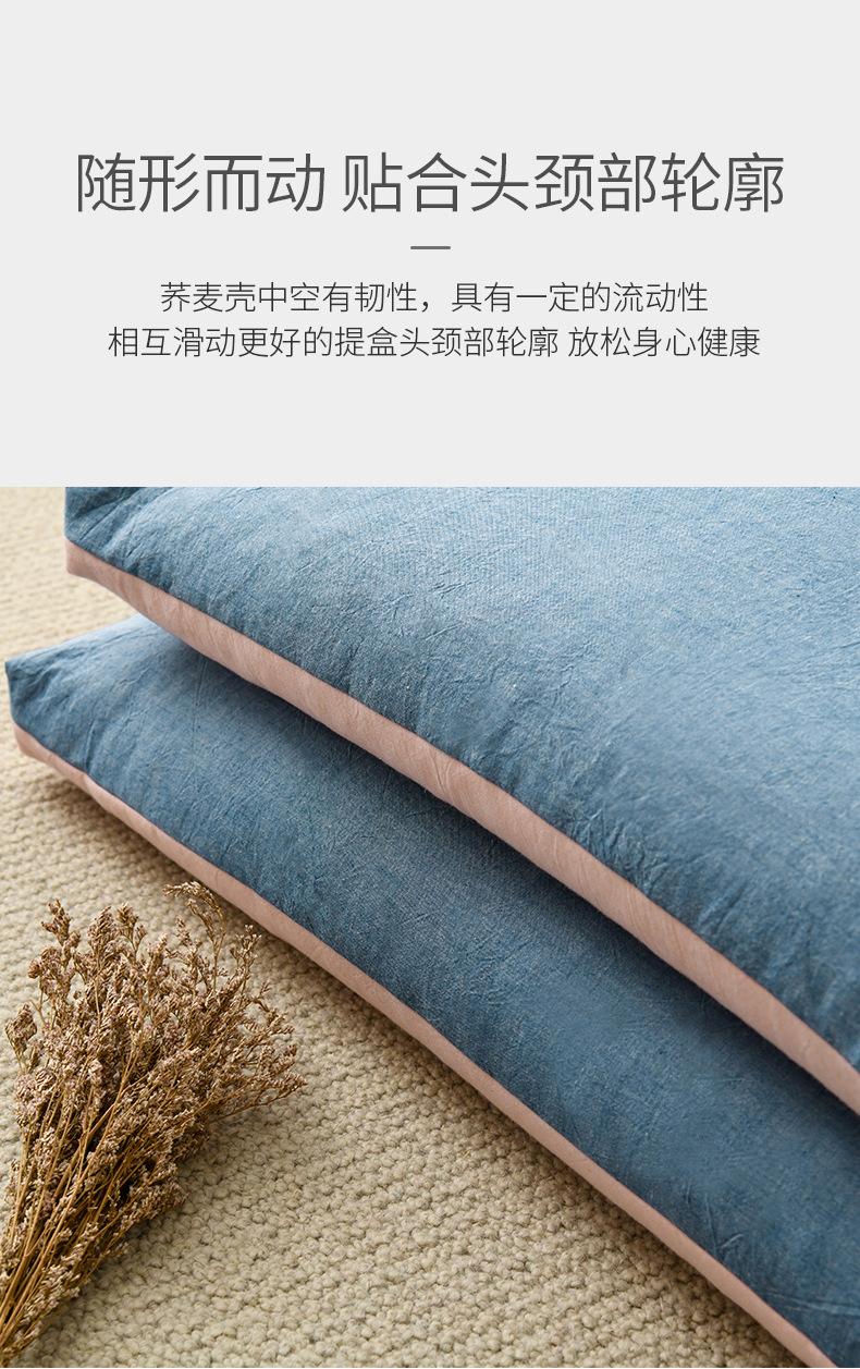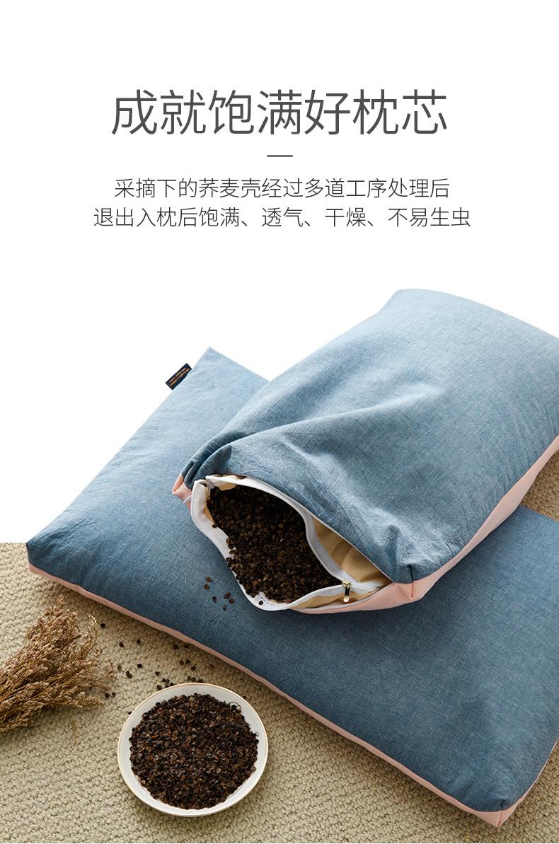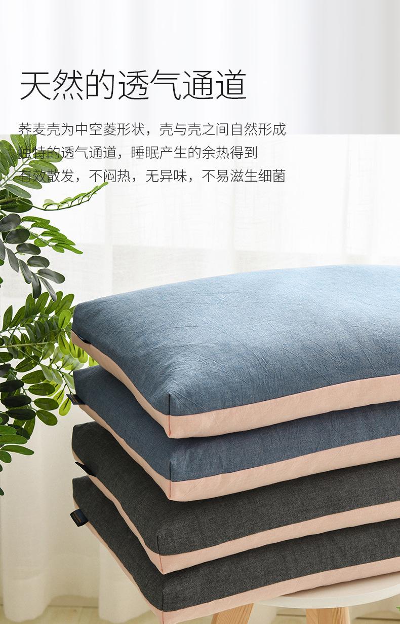 Almohada de Trigo Sarraceno Integral de Algodón Lavado Bicolor, Almohada de Cáscara de Trigo Sarraceno, Núcleo de Almohada para Dormir Protector de Cuello, Almohada para Estudiante, Almohada de Cáscara de Trigo Sarraceno