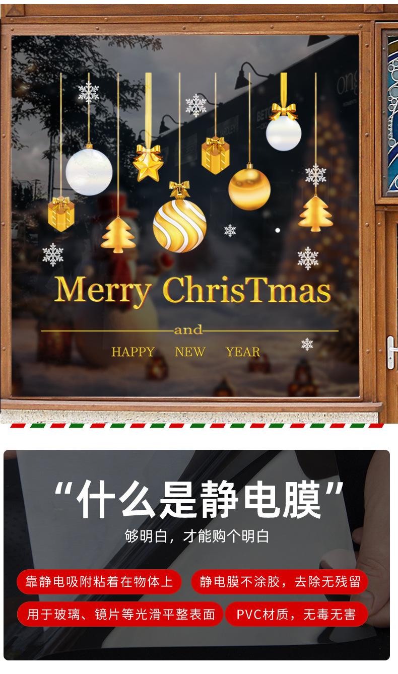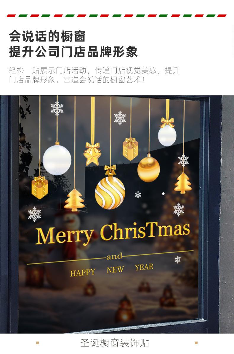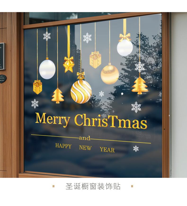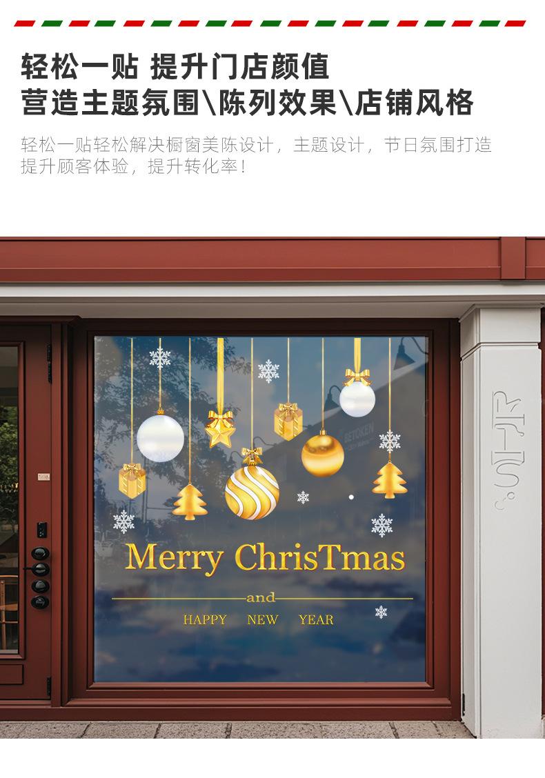 Adorno Navideño de Bola Color Oro Adhesivos Electrostáticos para Puerta de Vidrio Diseño de Escena Festiva Decoraciones para Ventana de Centro Comercial Adhesivos para Ambiente de Evento