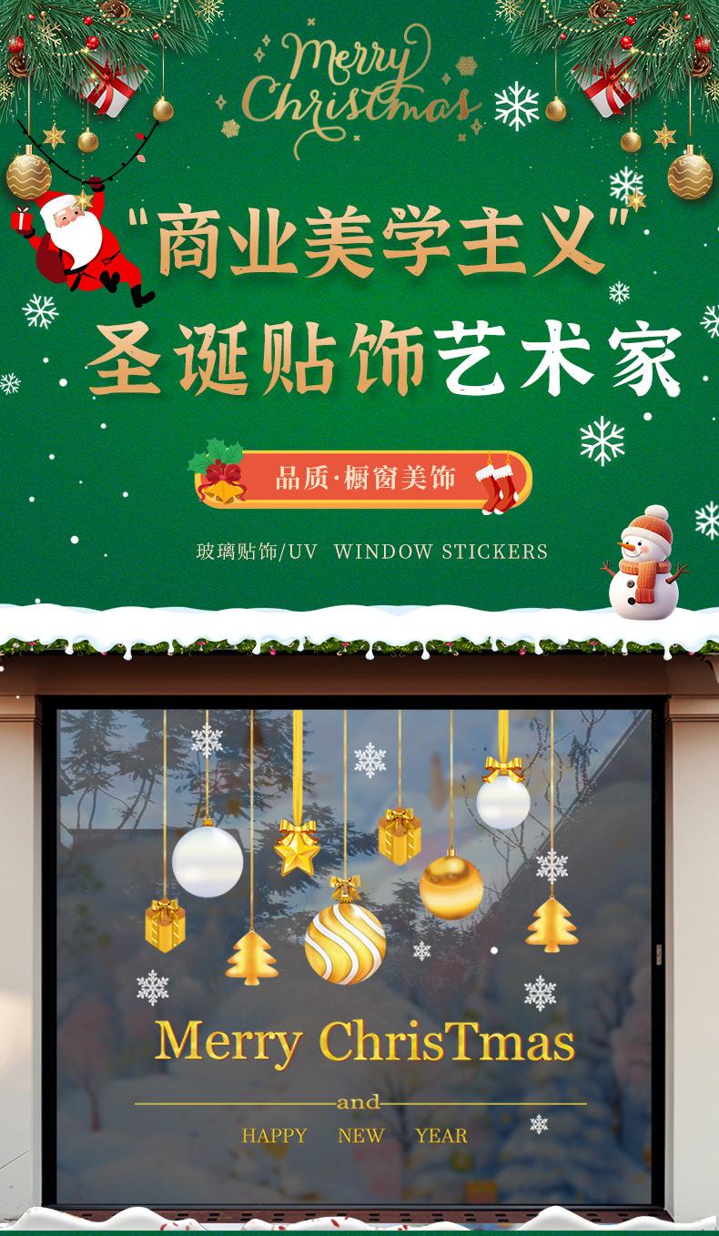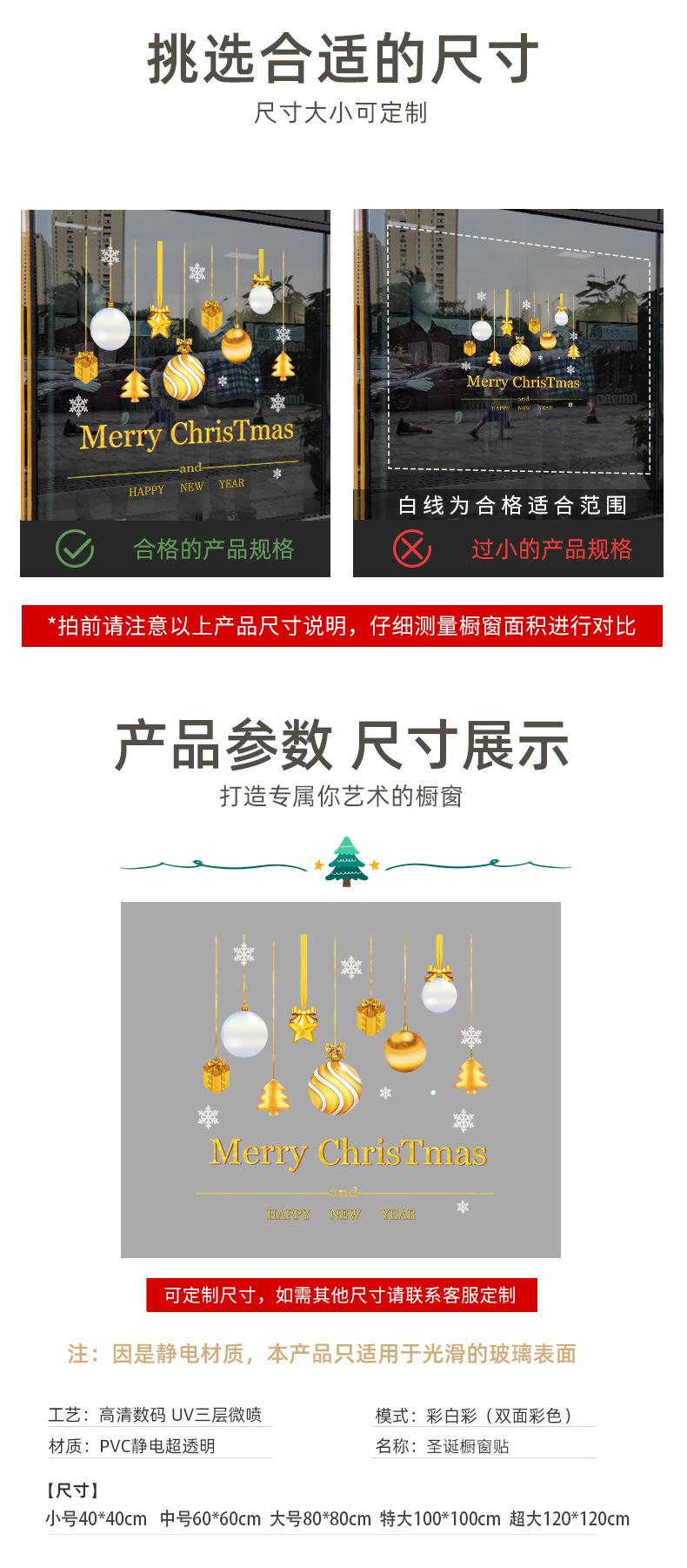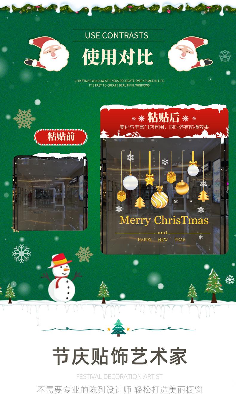 Adorno Navideño de Bola Color Oro Adhesivos Electrostáticos para Puerta de Vidrio Diseño de Escena Festiva Decoraciones para Ventana de Centro Comercial Adhesivos para Ambiente de Evento