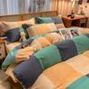 Juego de Cuatro Piezas de Algodón Puro Cepillado, Otoño e Invierno Algodón Puro Sábanas Gruesas de Alta Gama, Funda de Edredón, Cubre Sábana Ajustable, Juego de Cama de Tres Piezas