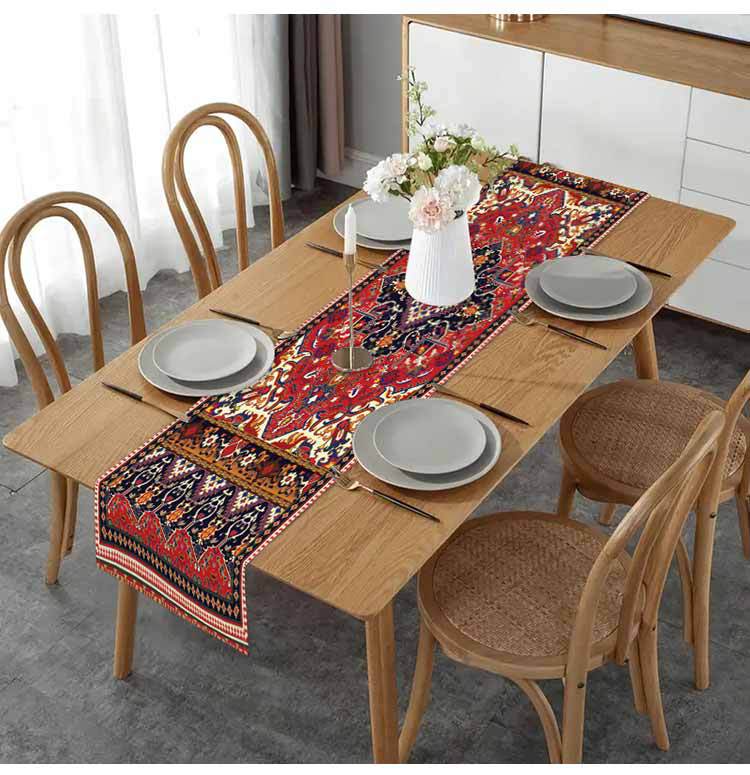 Nuevo Estilo Europeo Texturizado Impreso Bandera de Mesa Transfronteriza Lino Decoración de Restaurante Estilo Bohemio Mantel Largo al por Mayor