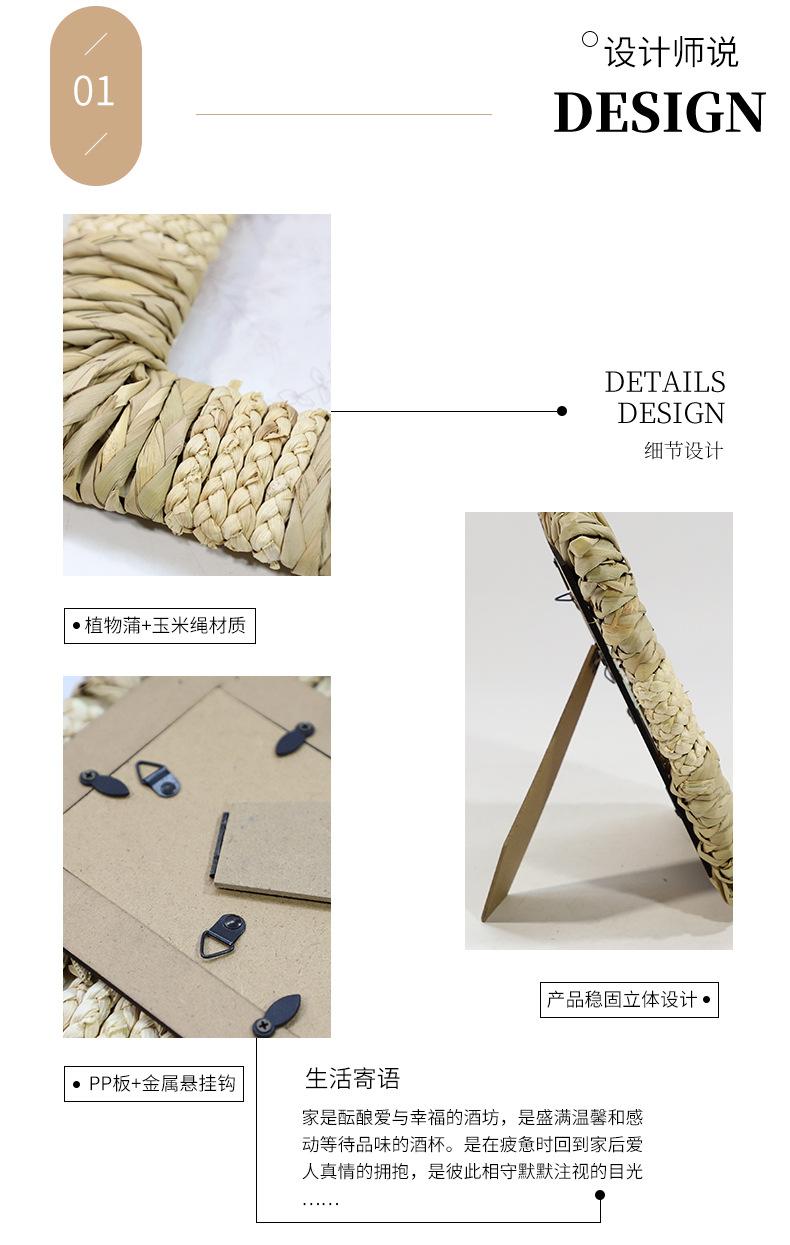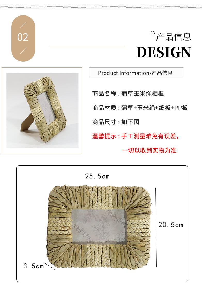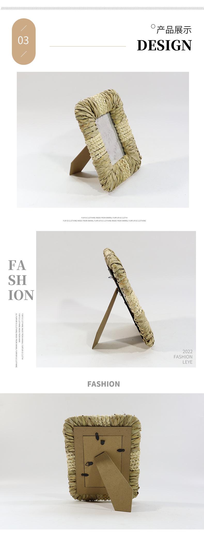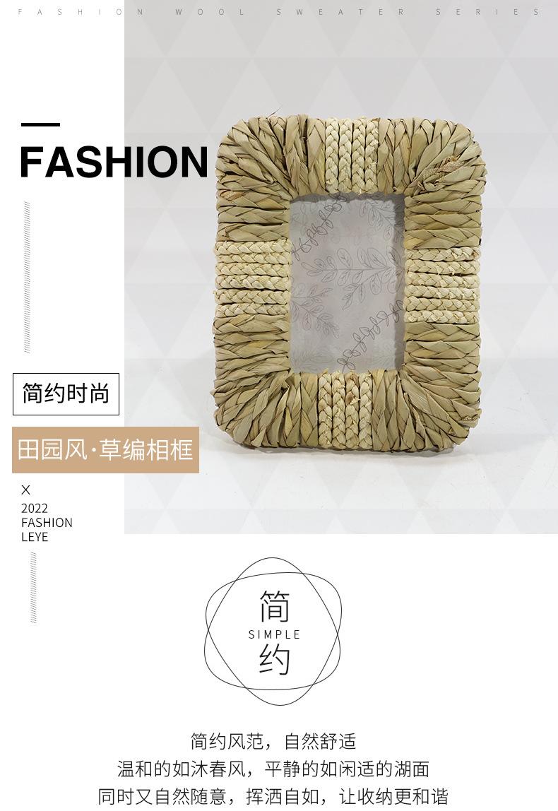 Marco de Fotos Personalizado de Estilo Nórdico de Paja de Jacinto de Agua Hecho a Mano Marco de Fotos Decoración de Mesita de Noche para Hotel/Casa de Huéspedes Marco de Fotos Vintage de Mesa