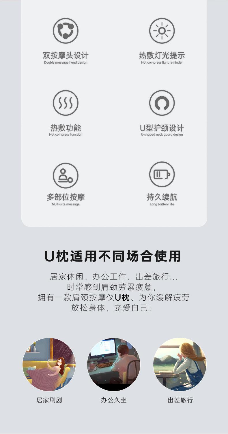 Compra Almohada de masaje eléctrica en forma de U protector de cuello amasamiento masajeador cervical portátil protector de cuello almohada en forma de U almohada de masaje cervical al por mayor en Joom.pro
