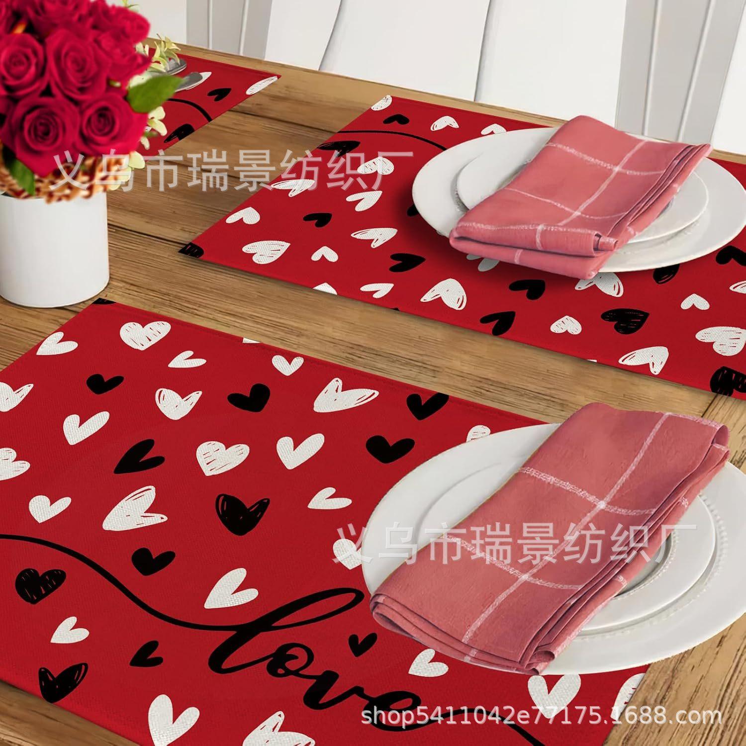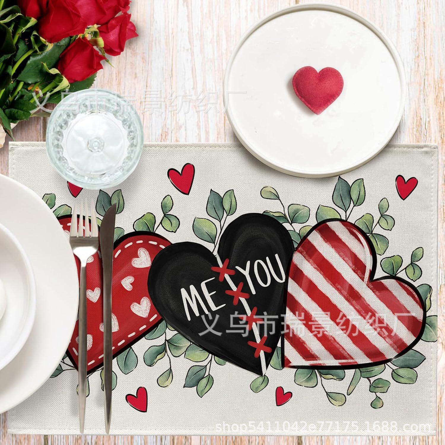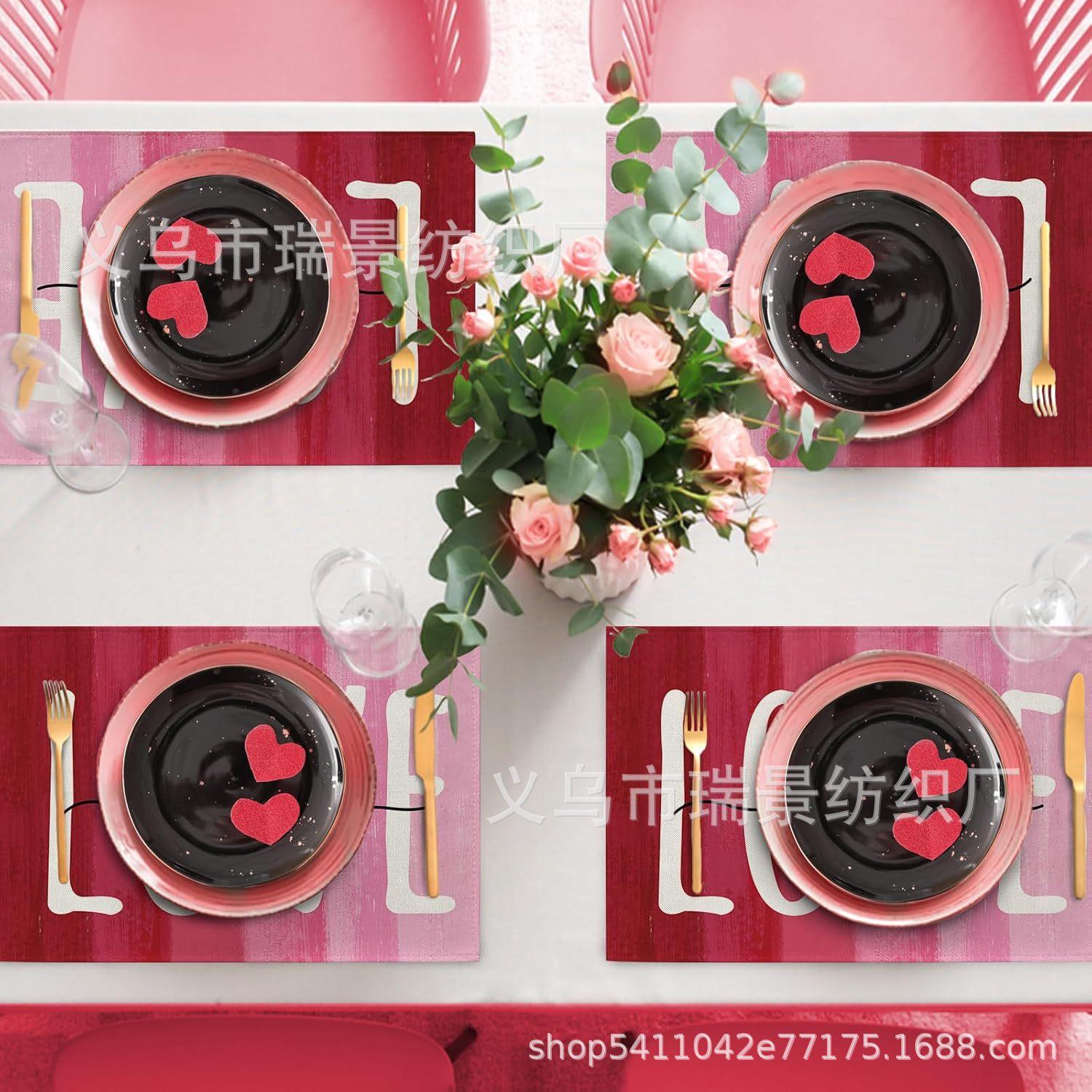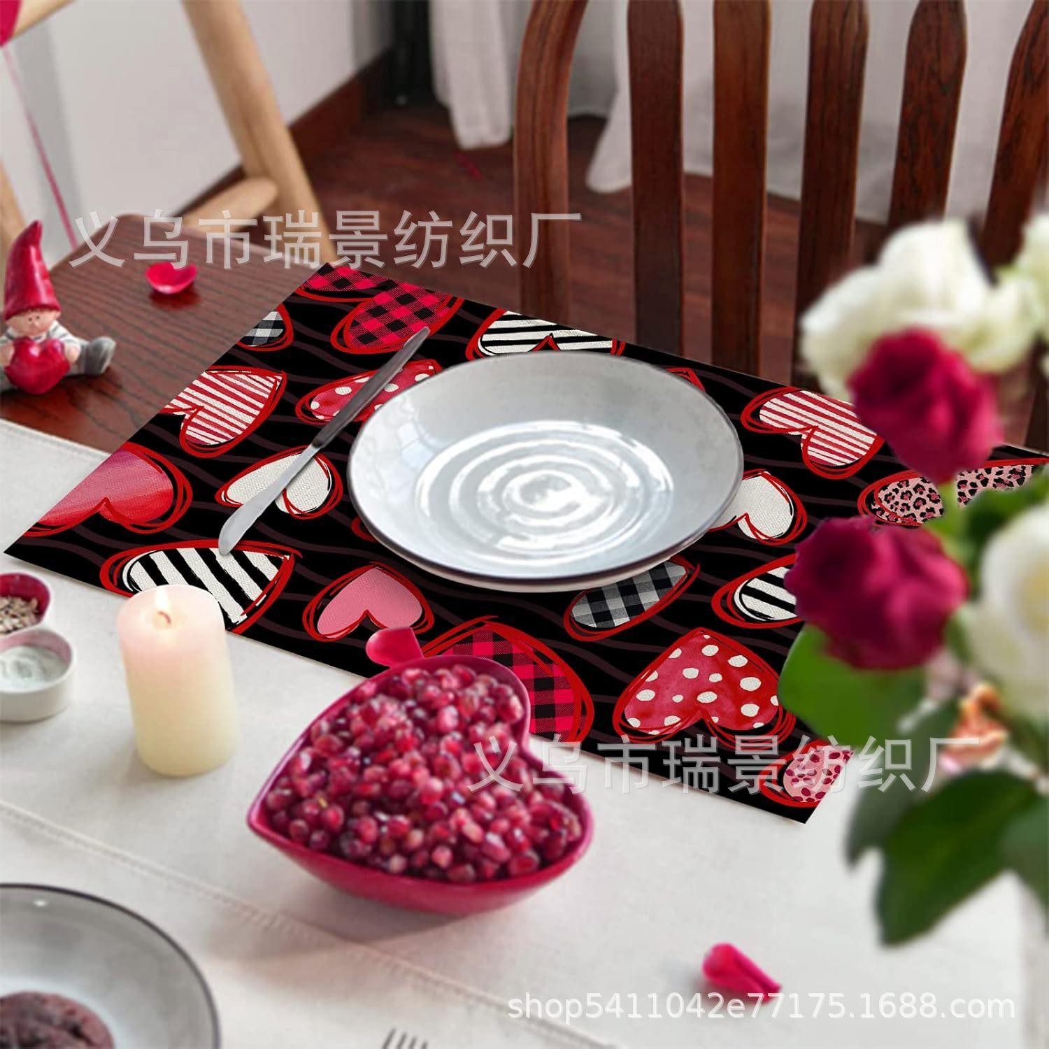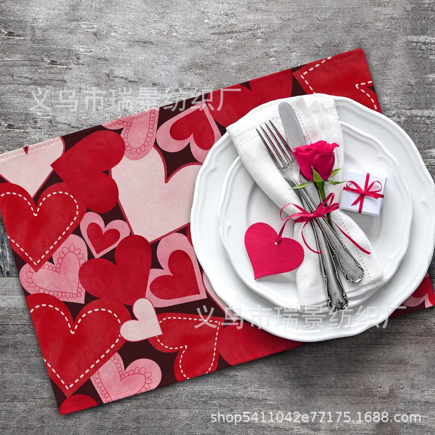 Mantel Individual de Venta Caliente Transfronterizo para el Día de San Valentín Rosa Roja Amor Decoración de Mesa de Comedor Mesa de Café Antimanchas Lino Mantel de Mesa