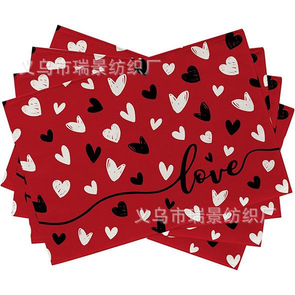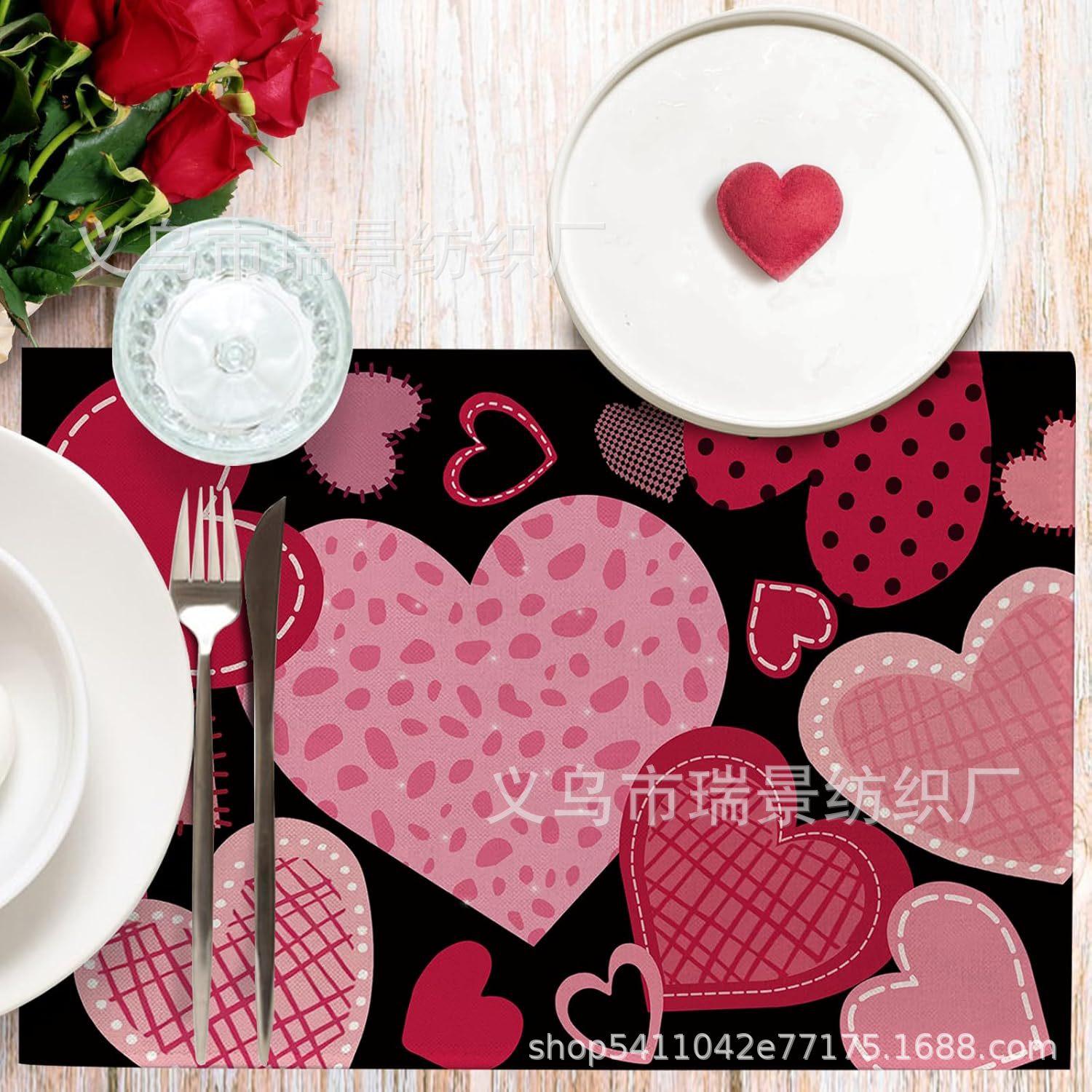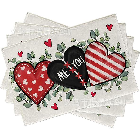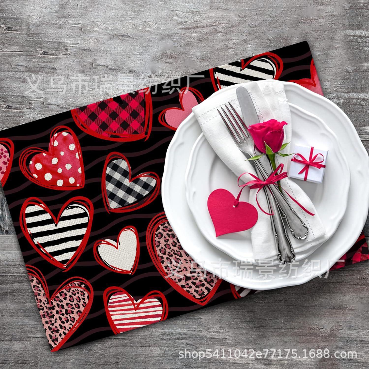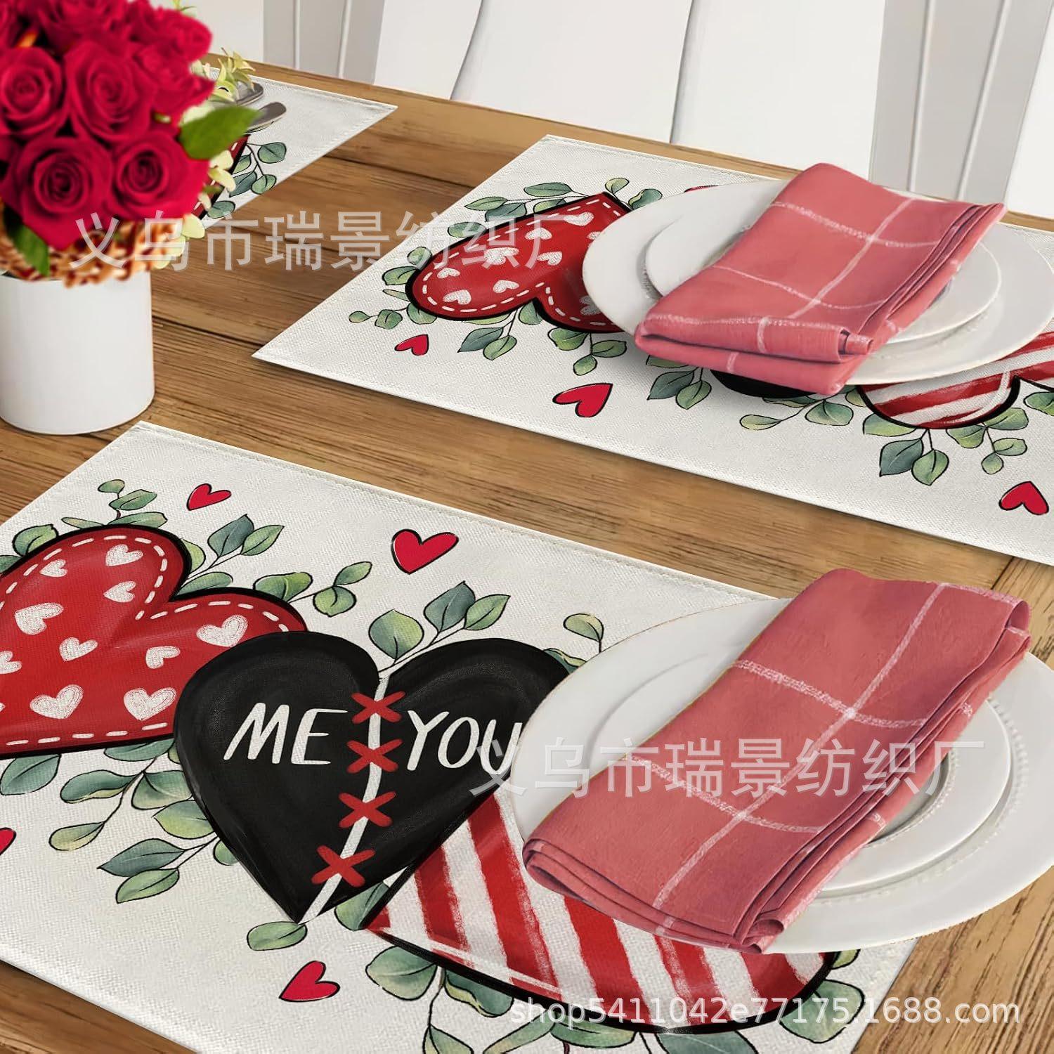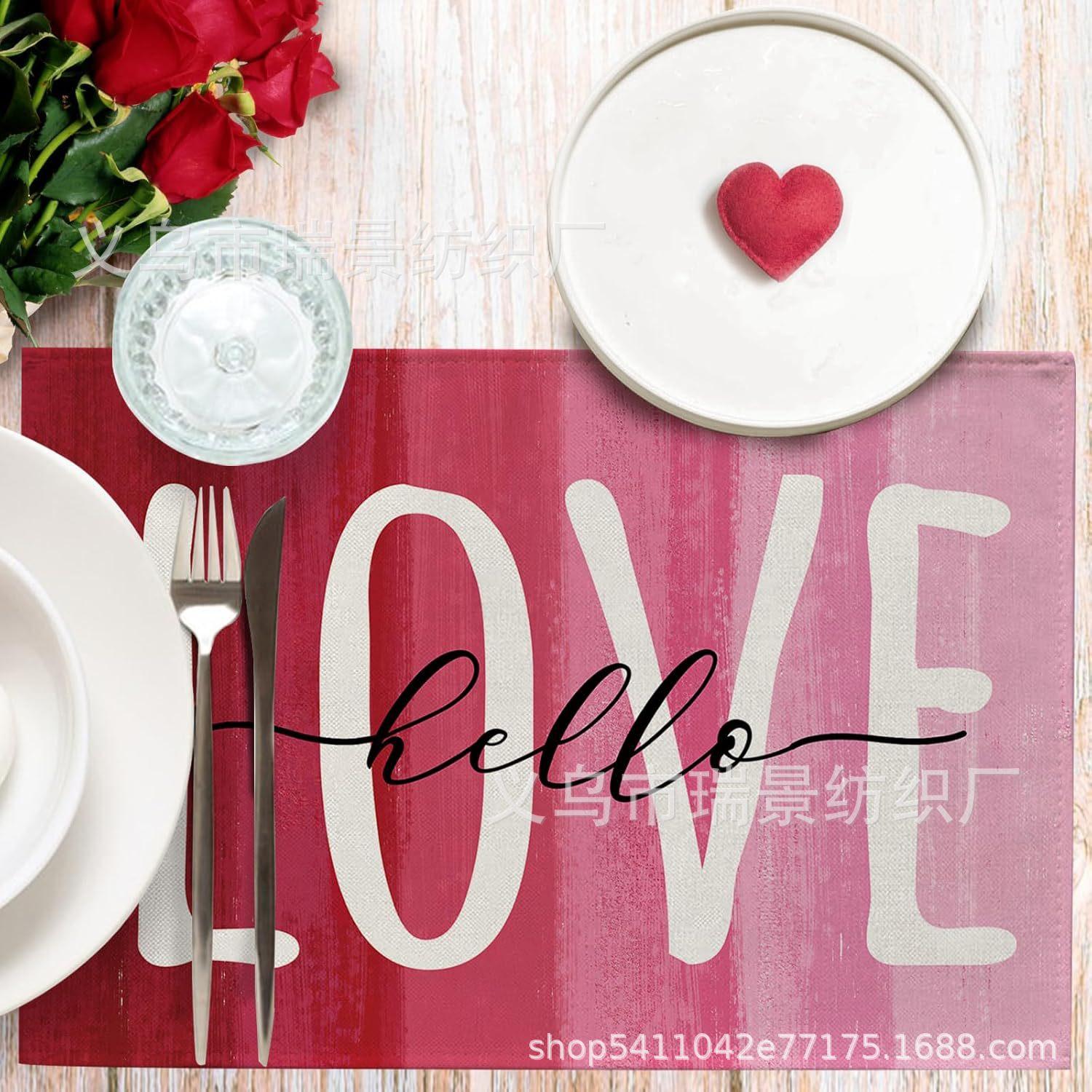 Mantel Individual de Venta Caliente Transfronterizo para el Día de San Valentín Rosa Roja Amor Decoración de Mesa de Comedor Mesa de Café Antimanchas Lino Mantel de Mesa