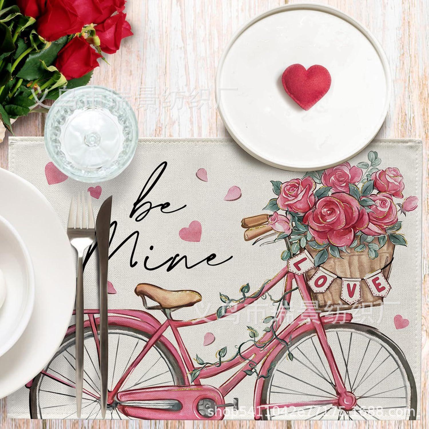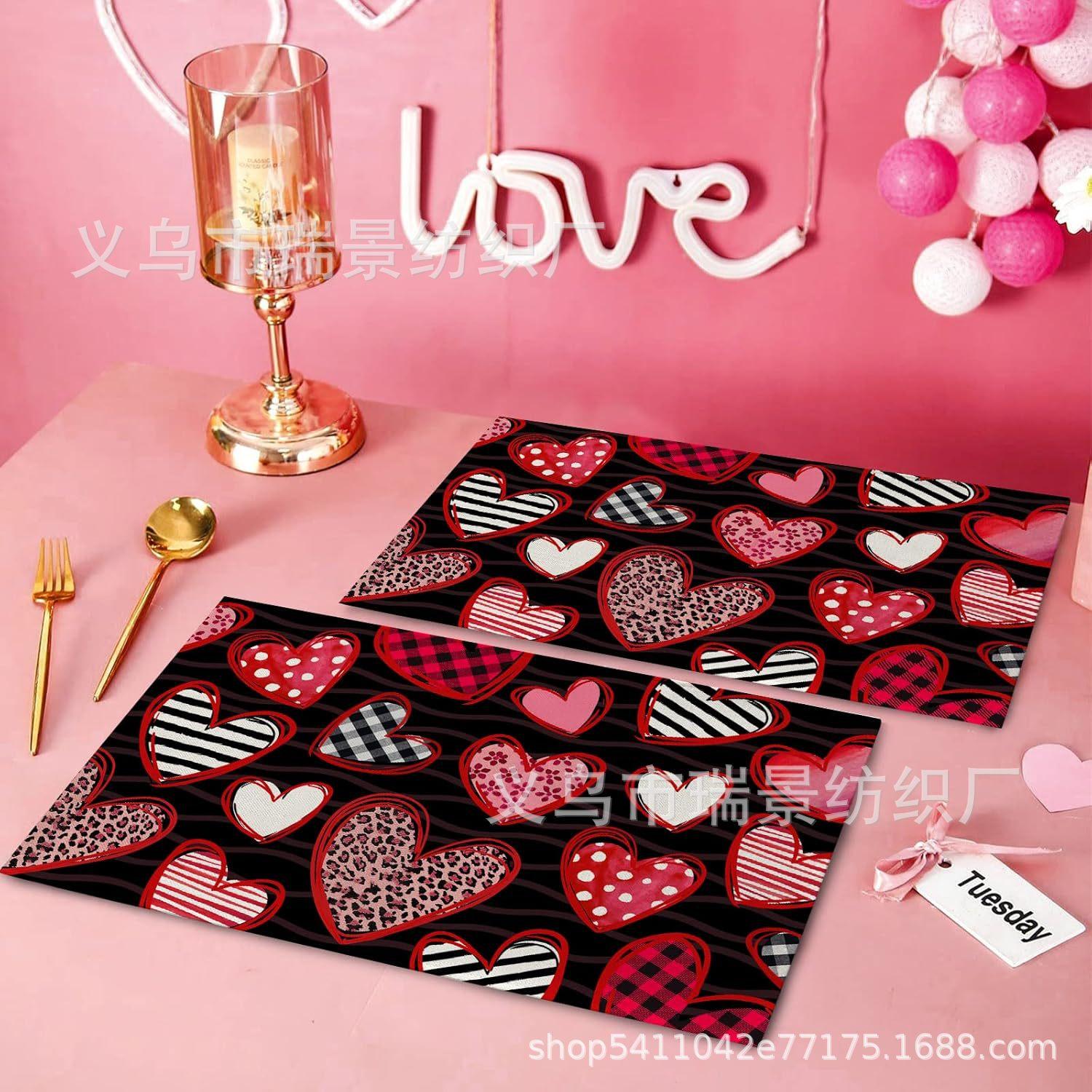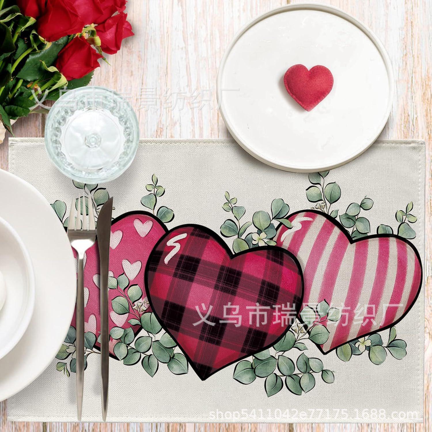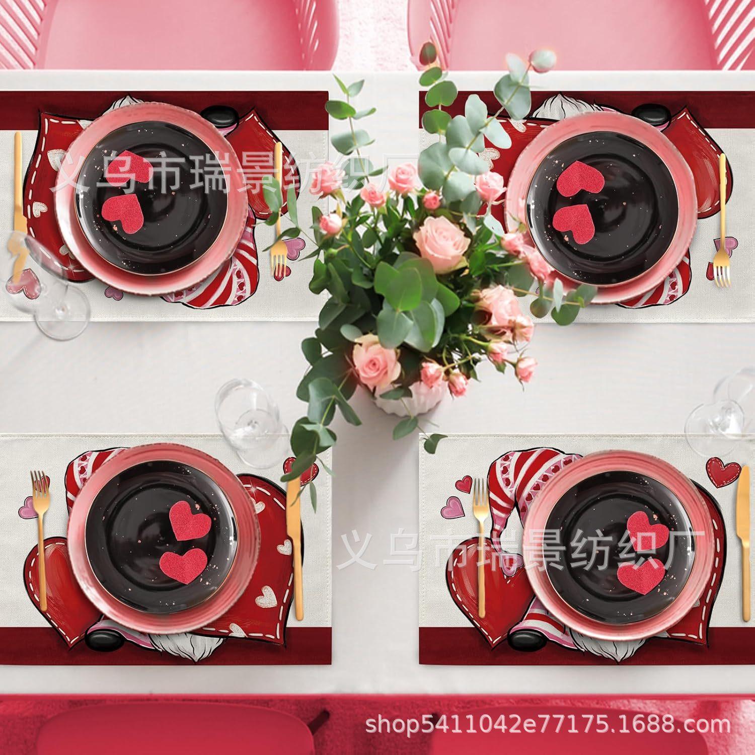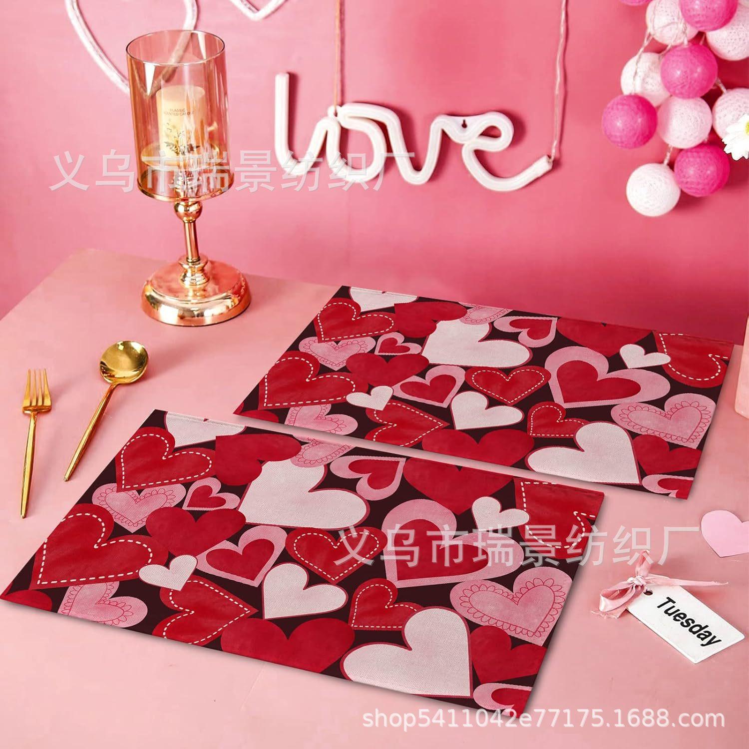 Mantel Individual de Venta Caliente Transfronterizo para el Día de San Valentín Rosa Roja Amor Decoración de Mesa de Comedor Mesa de Café Antimanchas Lino Mantel de Mesa
