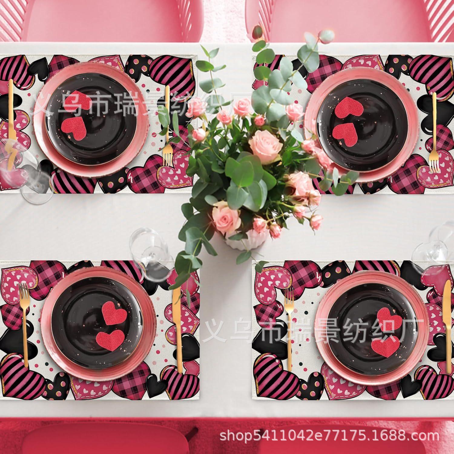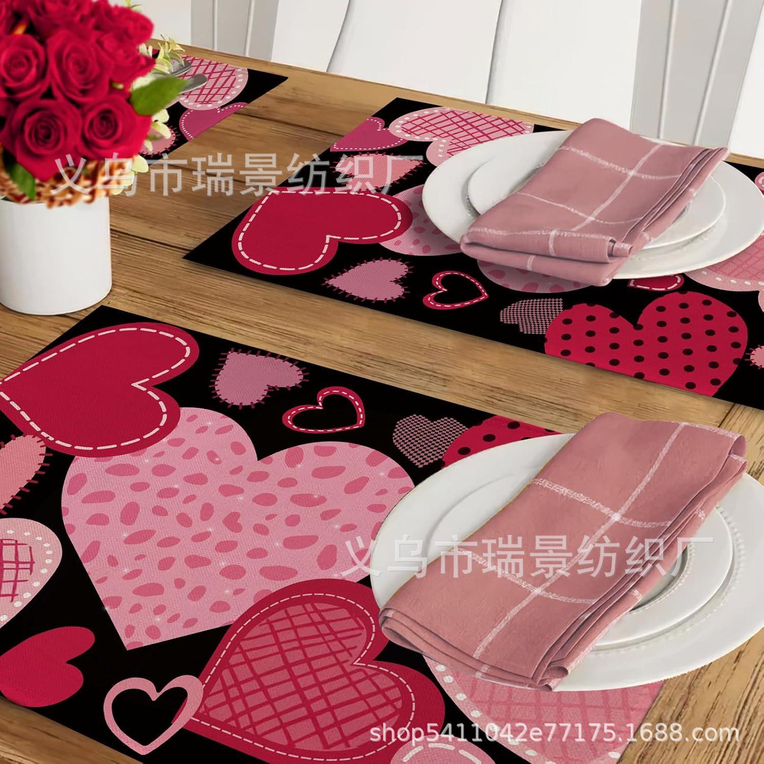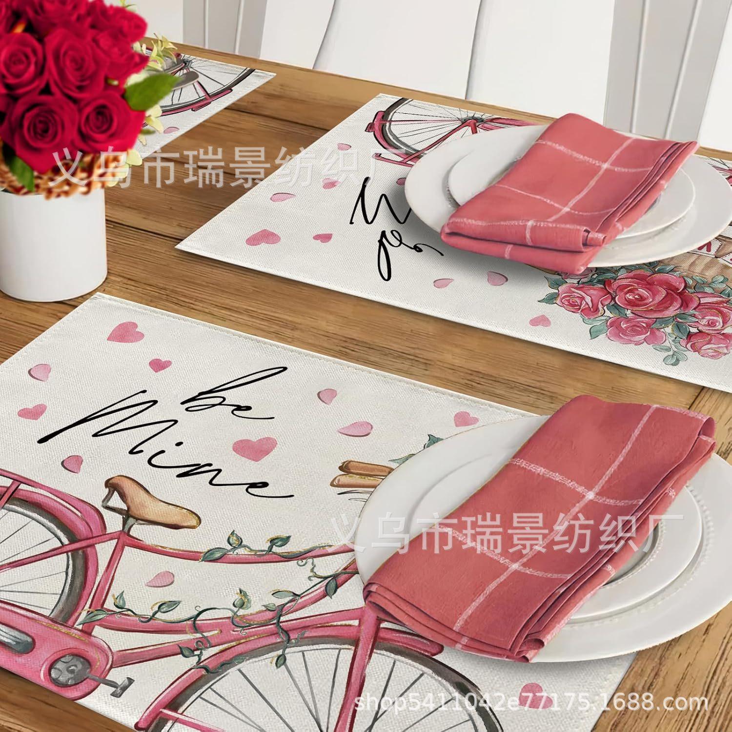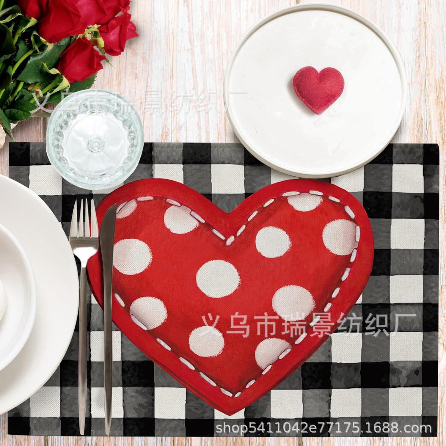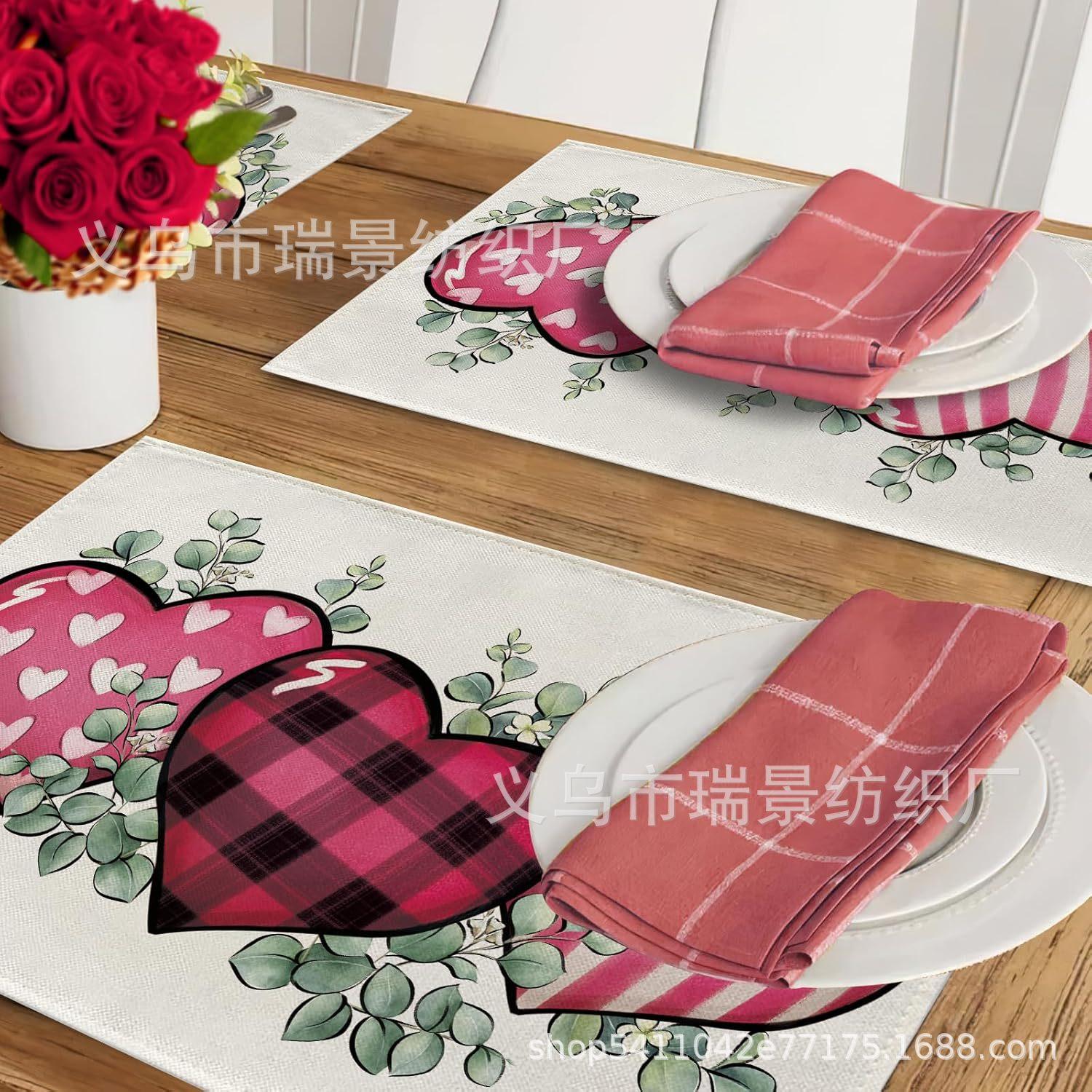 Mantel Individual de Venta Caliente Transfronterizo para el Día de San Valentín Rosa Roja Amor Decoración de Mesa de Comedor Mesa de Café Antimanchas Lino Mantel de Mesa