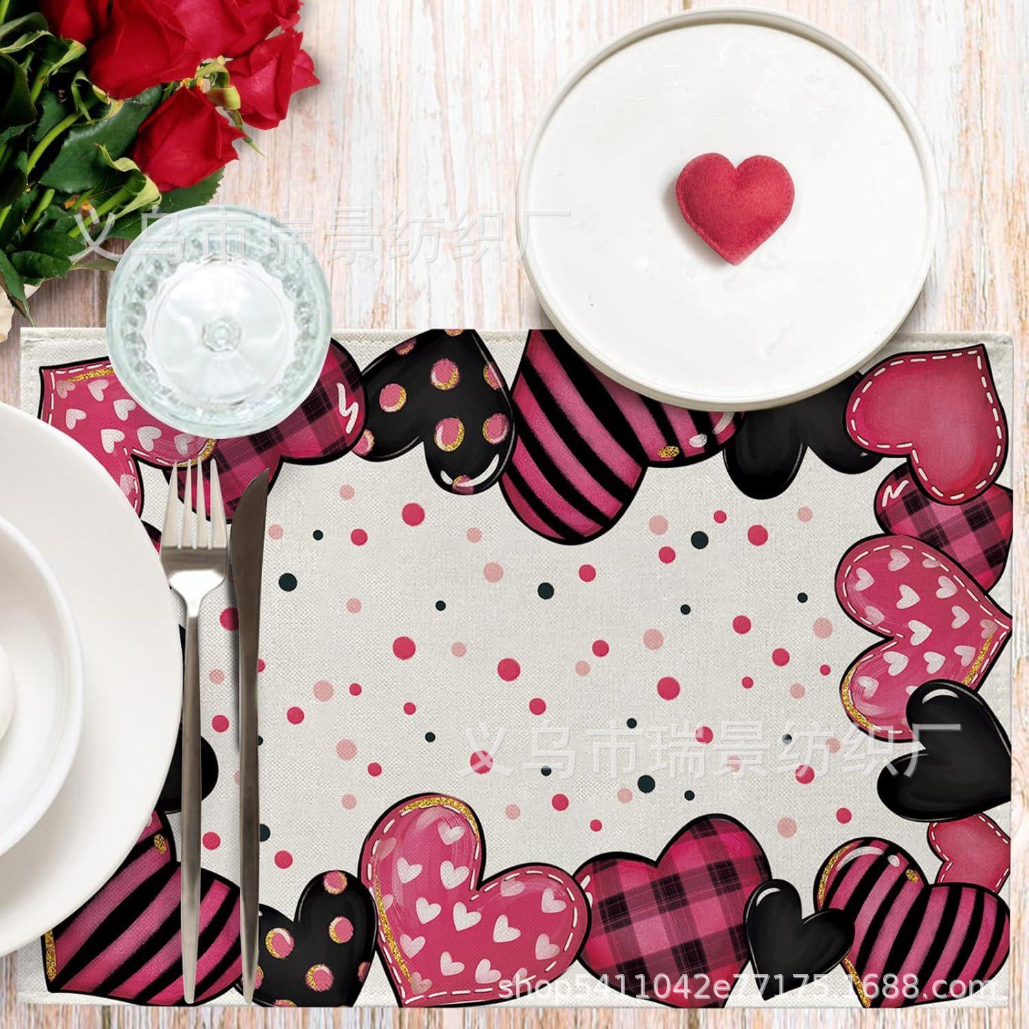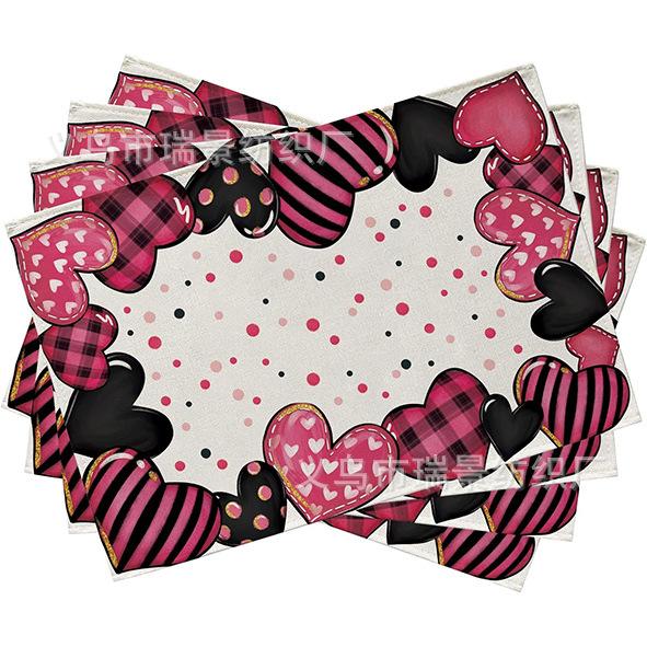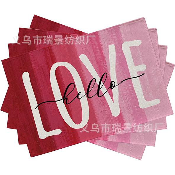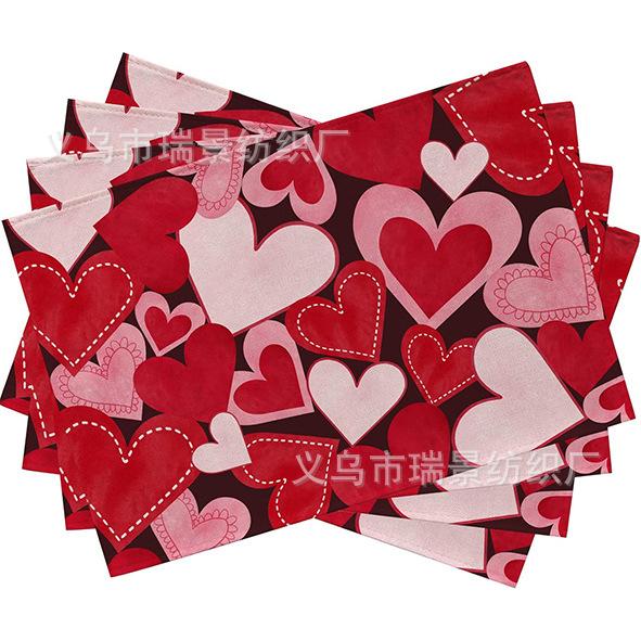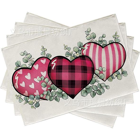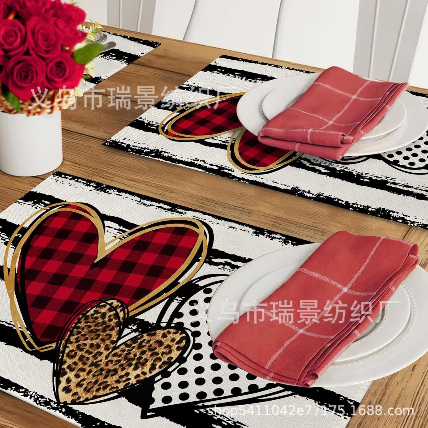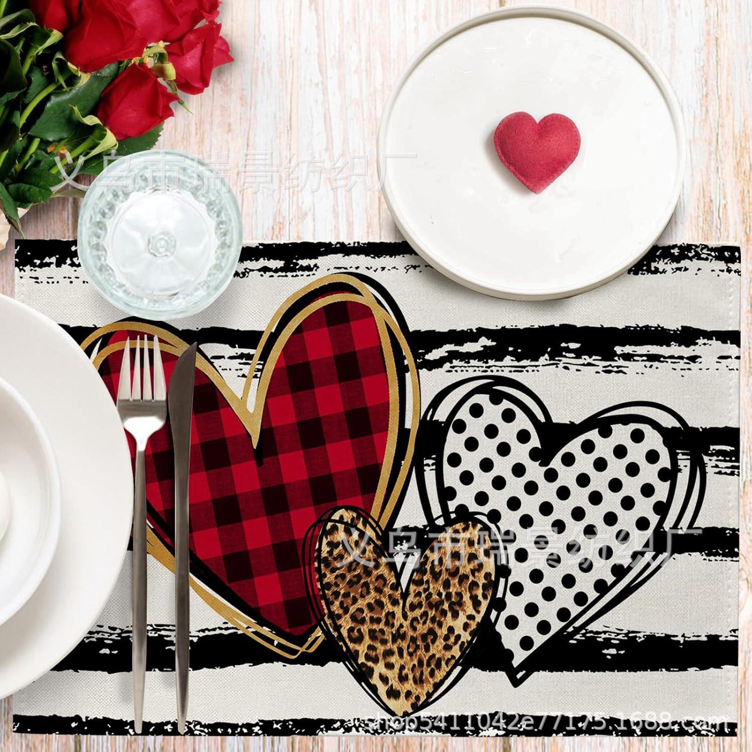 Mantel Individual de Venta Caliente Transfronterizo para el Día de San Valentín Rosa Roja Amor Decoración de Mesa de Comedor Mesa de Café Antimanchas Lino Mantel de Mesa
