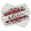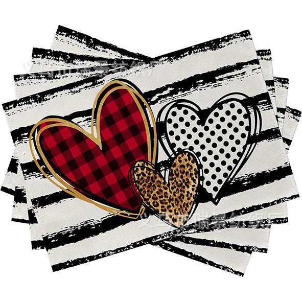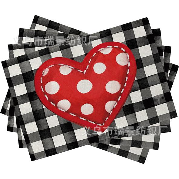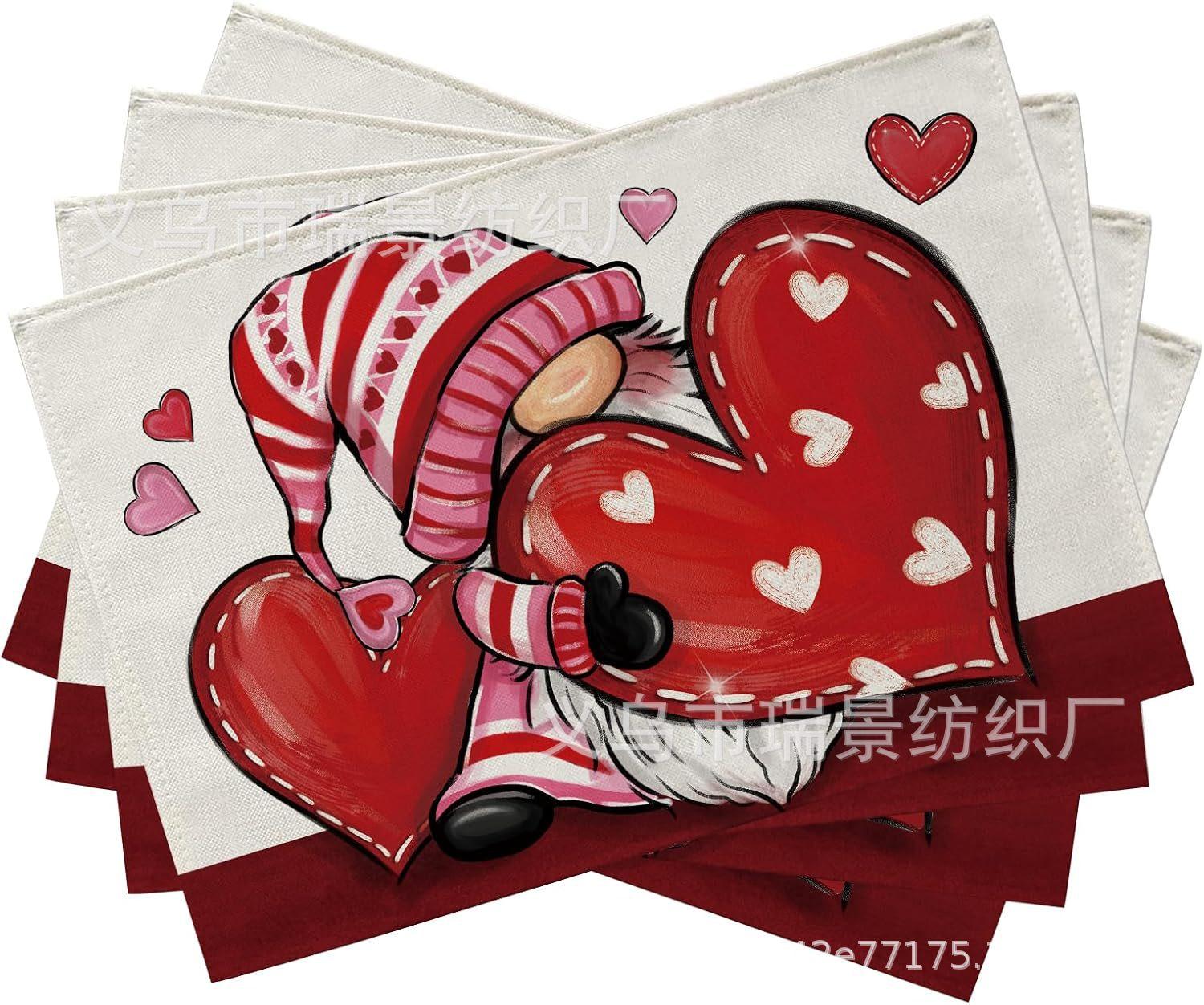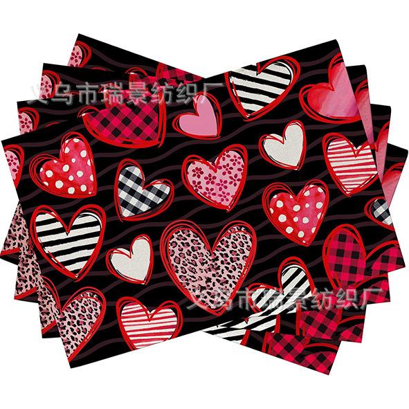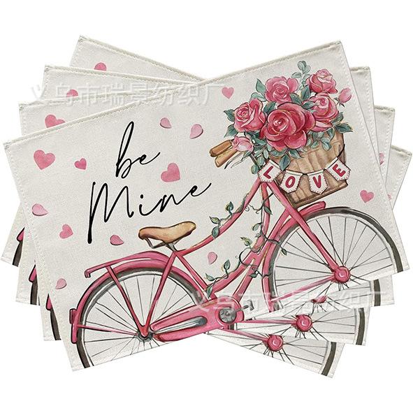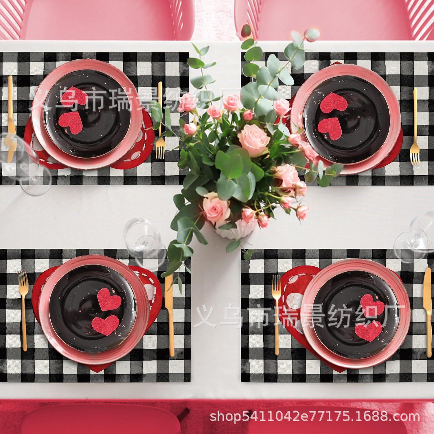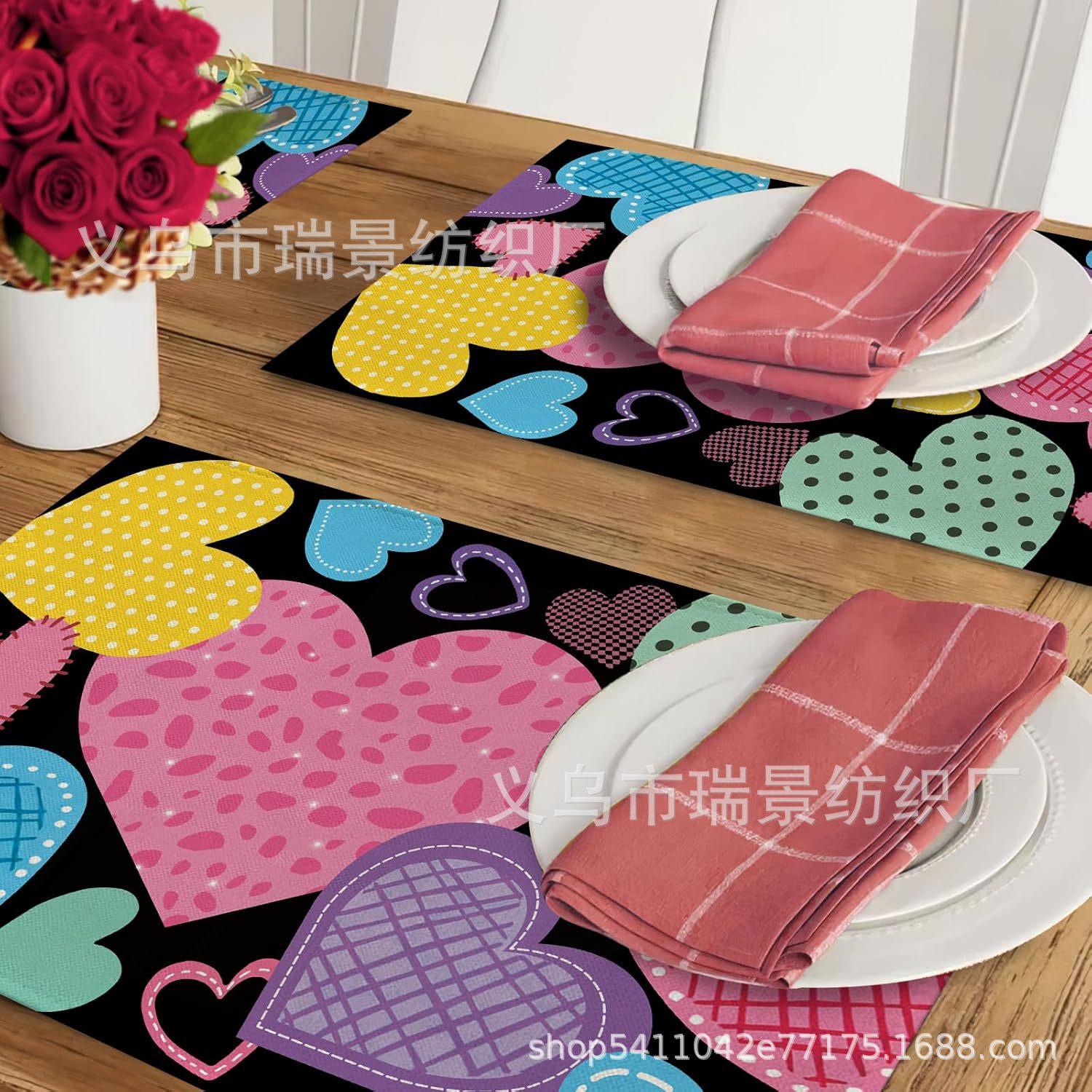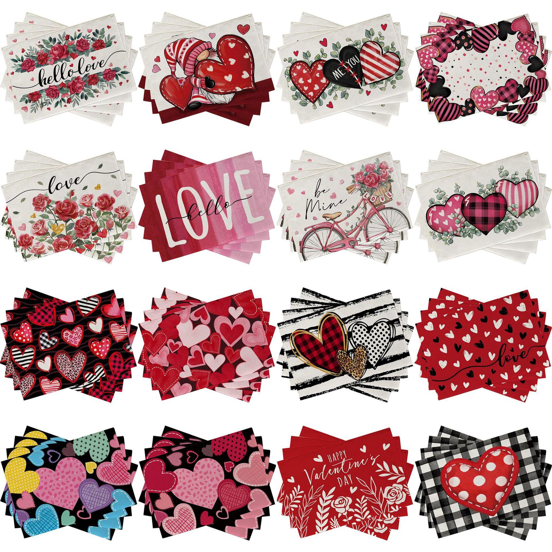 Mantel Individual de Venta Caliente Transfronterizo para el Día de San Valentín Rosa Roja Amor Decoración de Mesa de Comedor Mesa de Café Antimanchas Lino Mantel de Mesa
