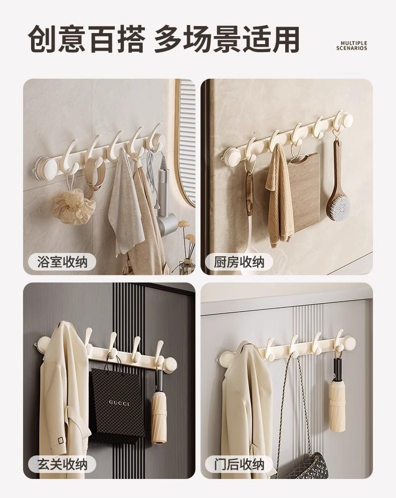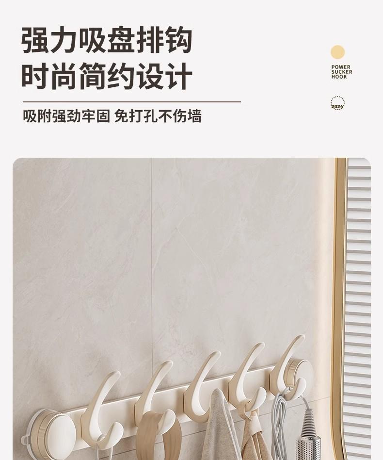 Gancho de Ventosa Transfronterizo Sin Perforaciones, Fuerte Soporte de Carga, Colgador de Ropa para Puerta de Baño, Estante de Almacenamiento para Baño, Gancho en Fila
