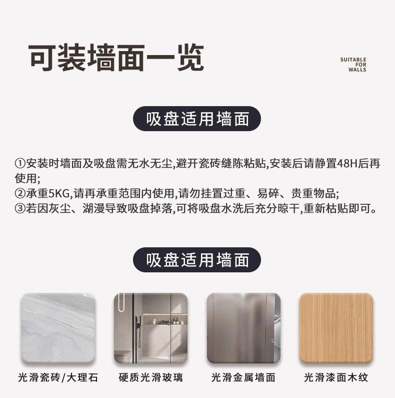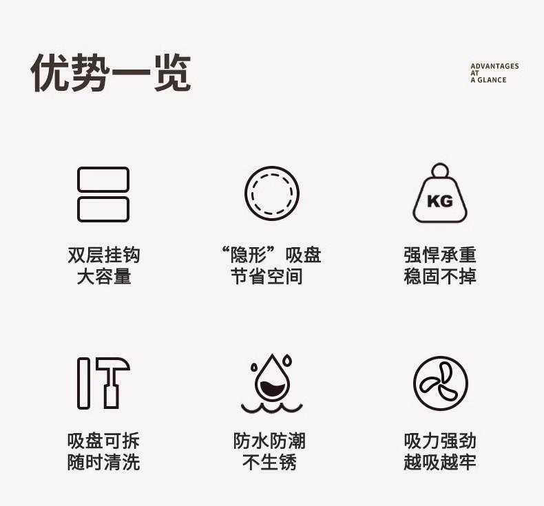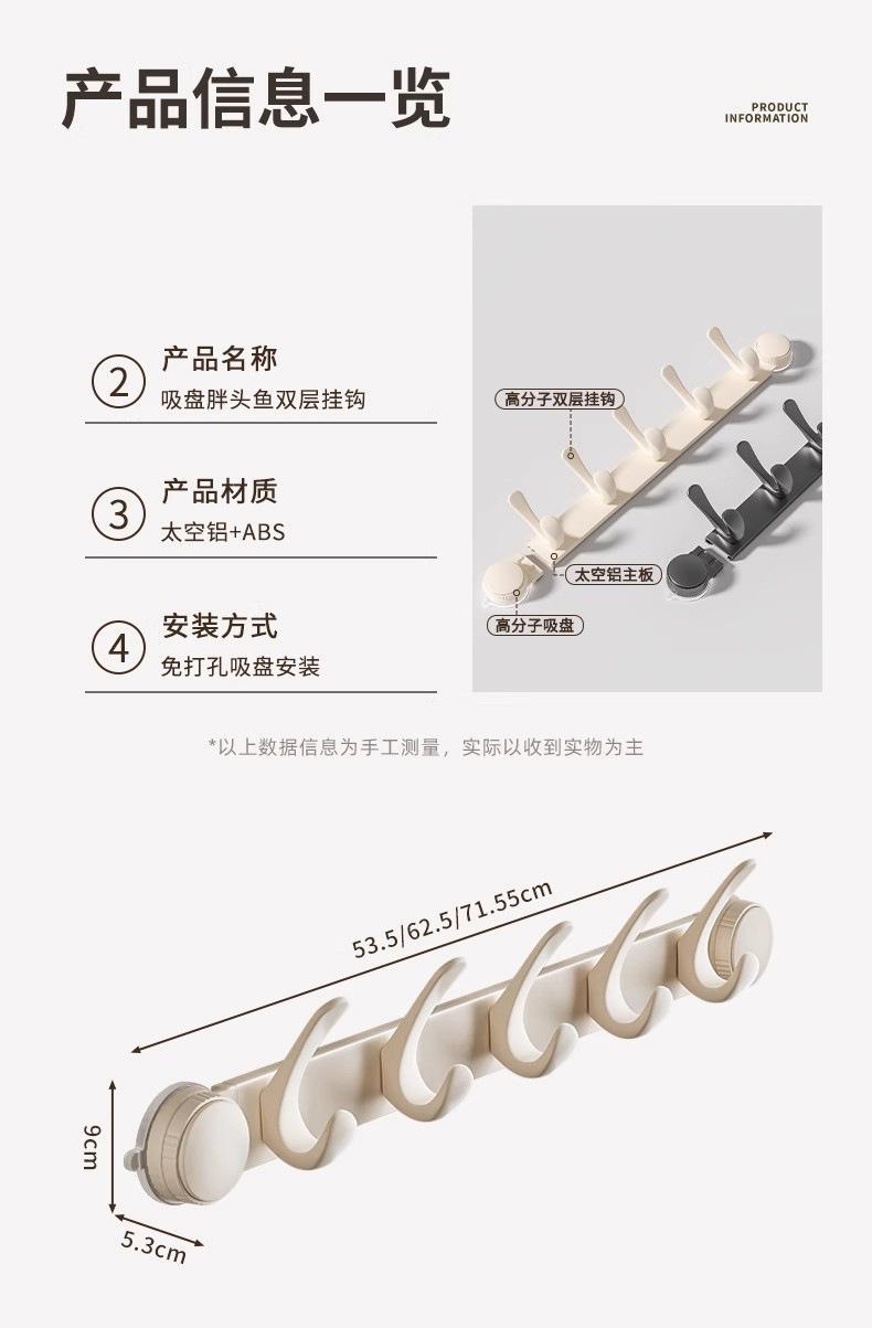 Powerful suction cup [gun ash] upper and lower double hooks - 5 hooks
