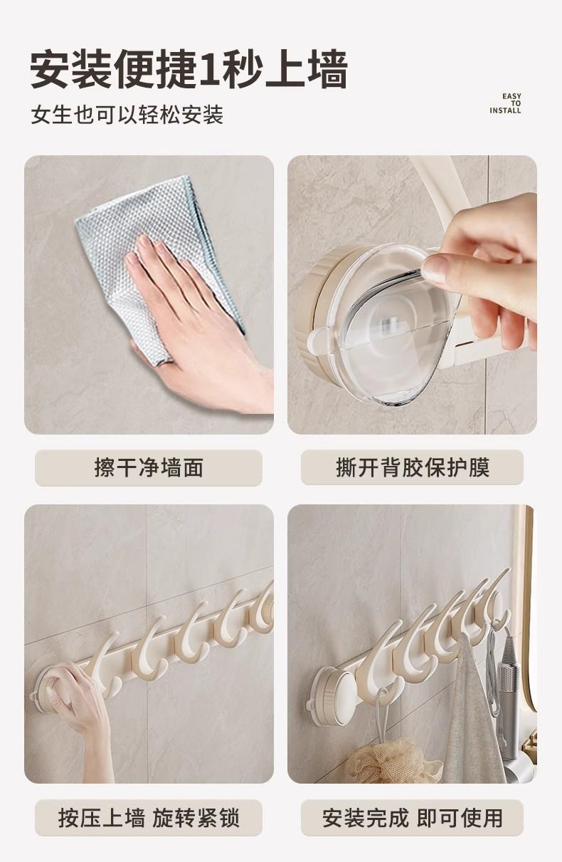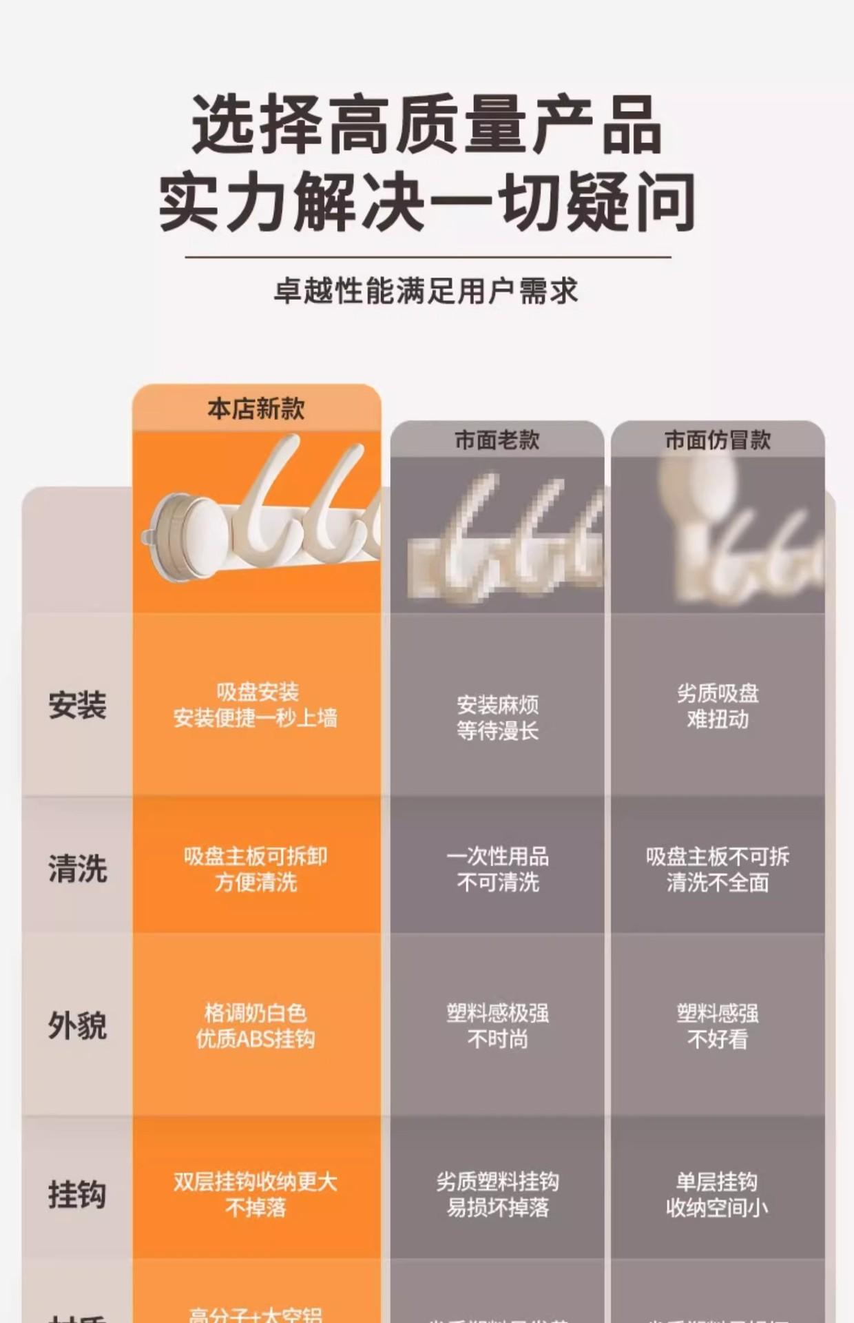 Powerful suction cup [milk white] upper and lower double hooks - 3 hooks, Powerful suction cup [milk white] up...