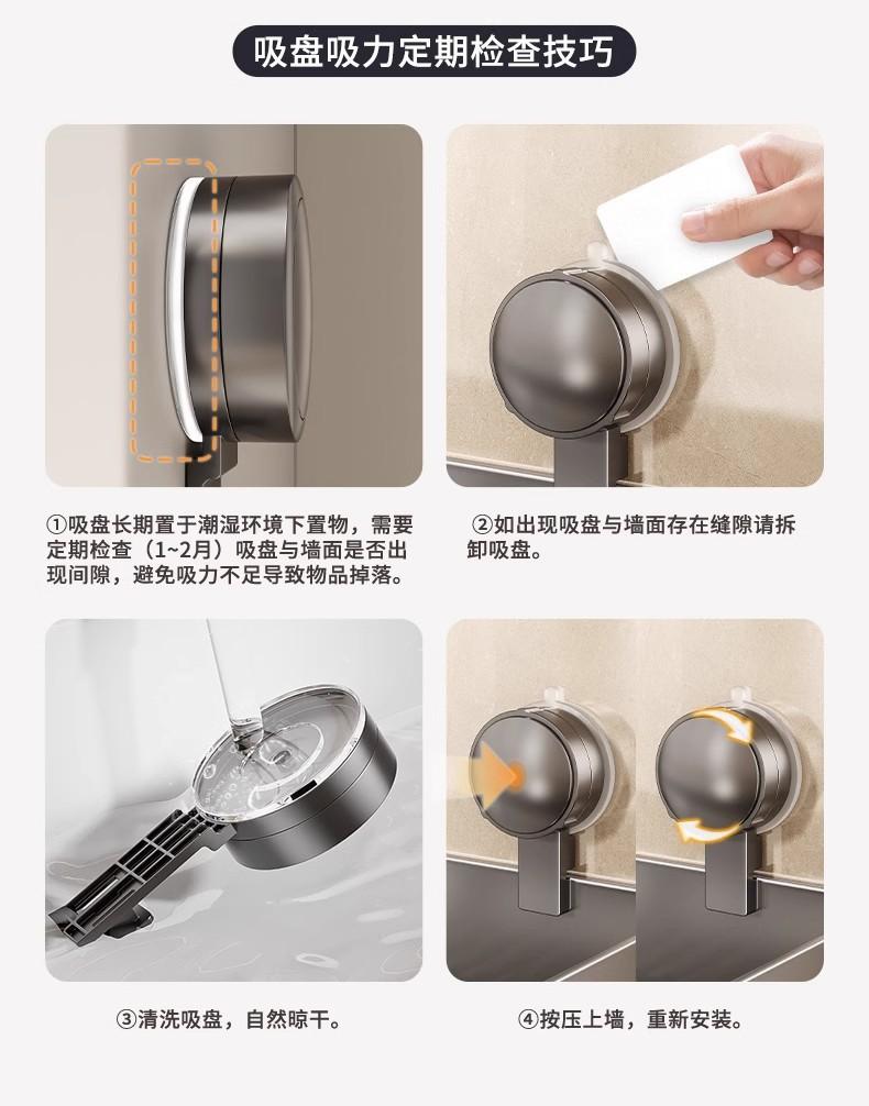Powerful suction cup [gun ash] upper and lower double hooks - 4 hooks