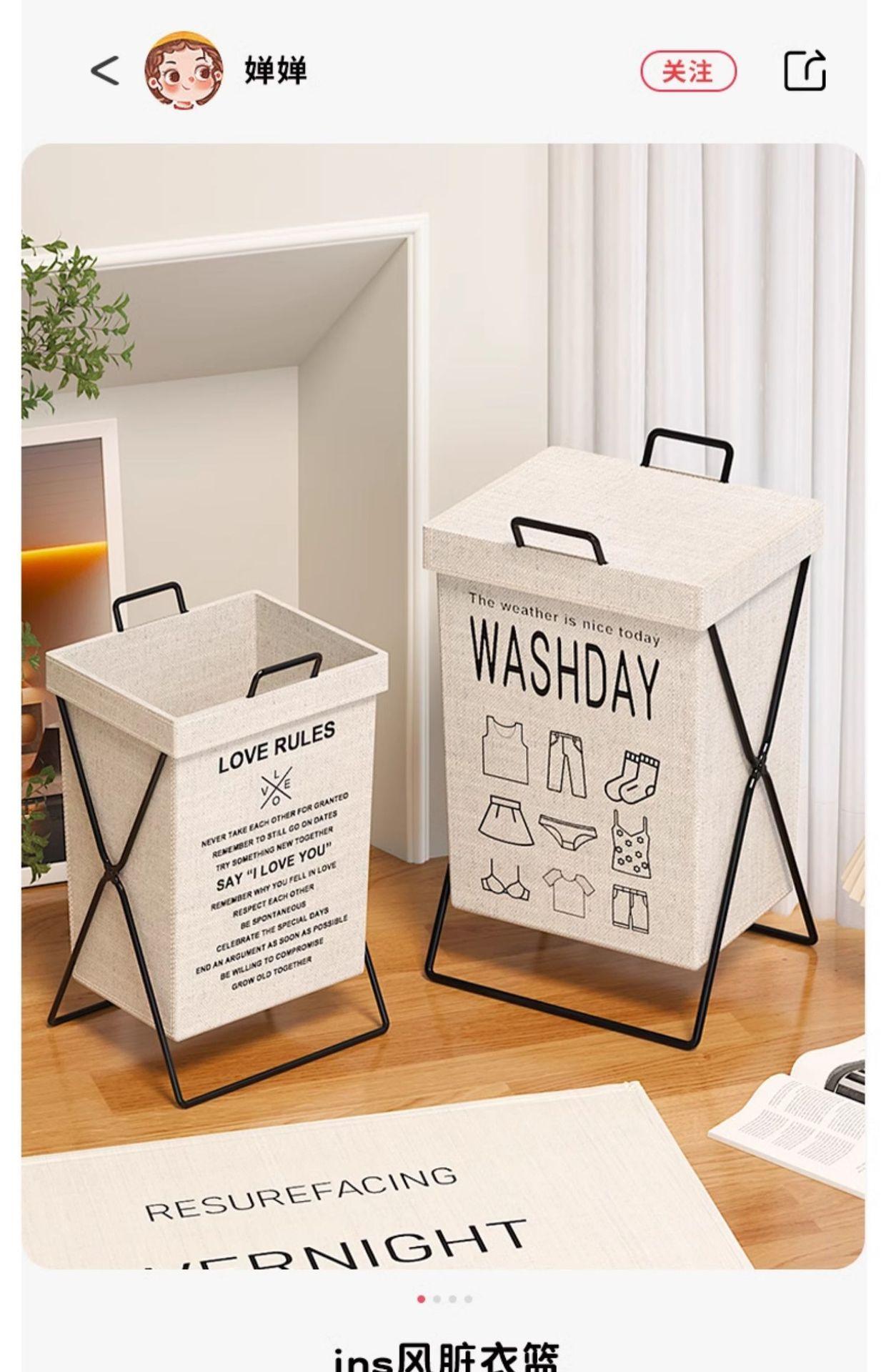 Side underwear frame [off-white], Large uncovered [pure off-white] dirty clothes basket, Large uncovered [wash...