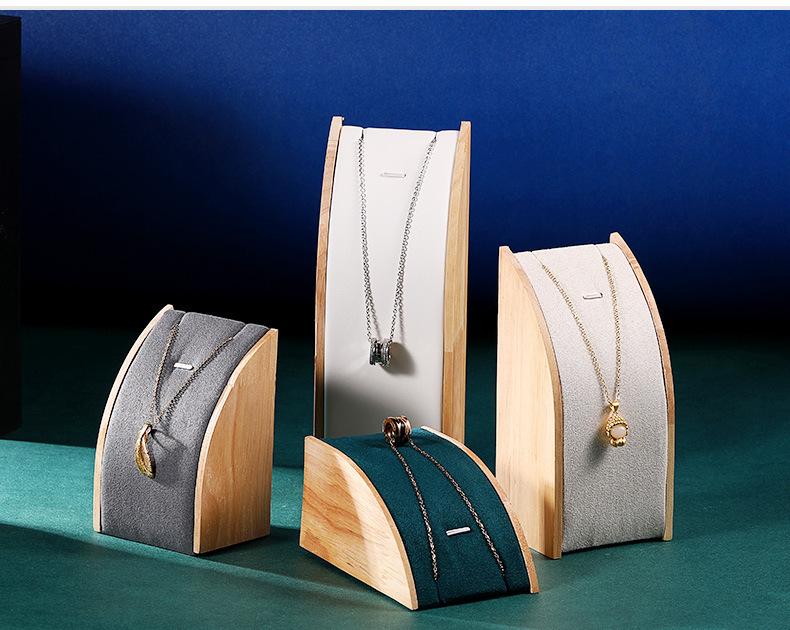 Soporte de Exhibición de Terciopelo de Madera Maciza de Alta Gama Collar Pulsera Accesorios Estante para Joyería Colgador de Colgantes de PU Estante para Collares