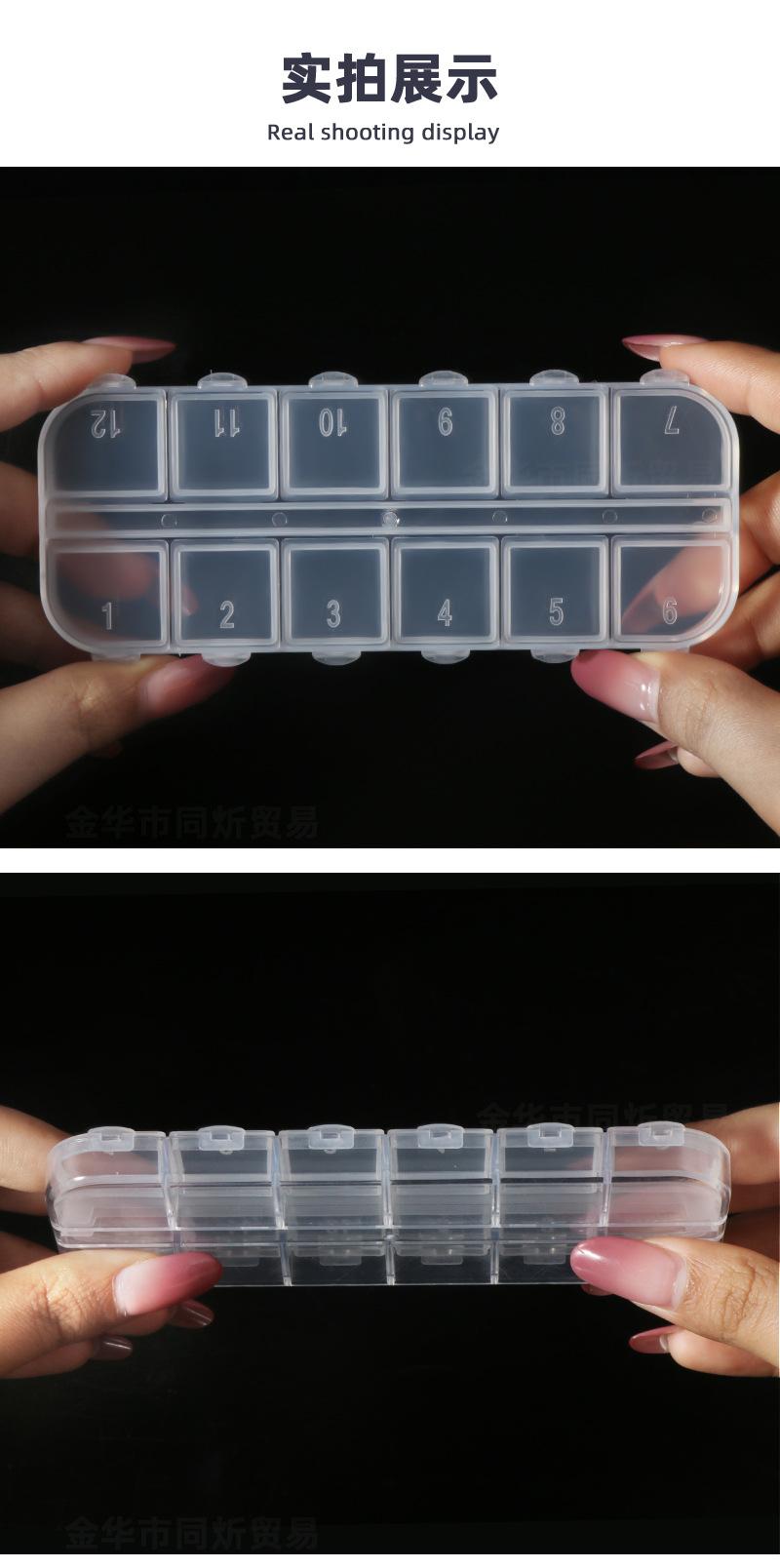 Suministro Transfronterizo Caja de Joyería para Arte de Uñas 12 Compartimentos Rectangular Caja de Diamantes para Arte de Uñas Caja de Almacenamiento con Tapa Abatible Caja de Embalaje para Joyería
