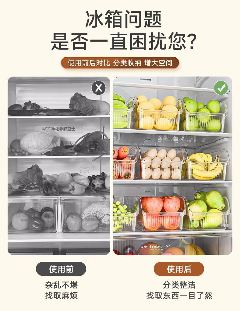 Caja de Almacenamiento para Refrigerador Caja Organizadora de Plástico para Alimentos Tipo Cajón Crisper Grado Alimenticio