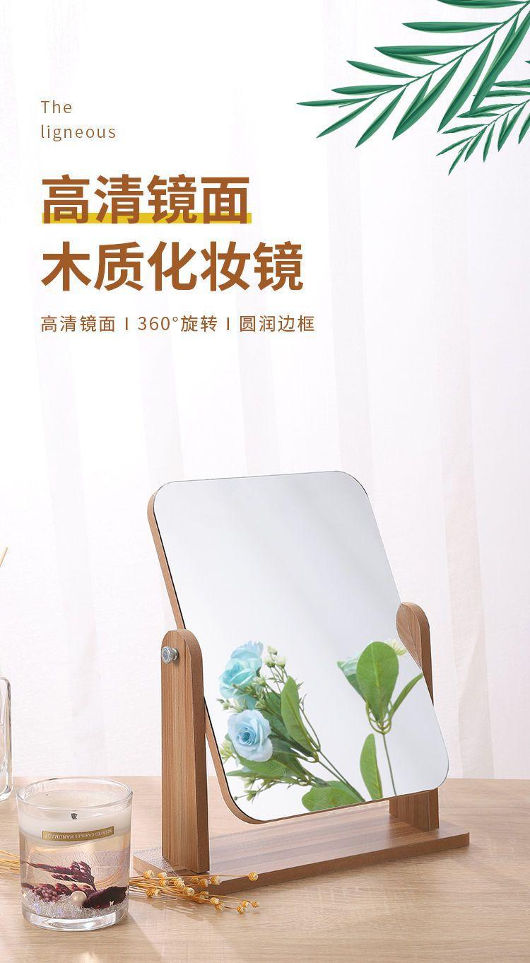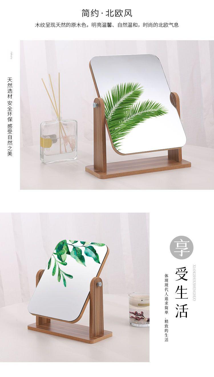 Espejo espejo de maquillaje portátil portátil dormitorio escritorio hogar giratorio espejo de tocador espejo de madera maquillaje