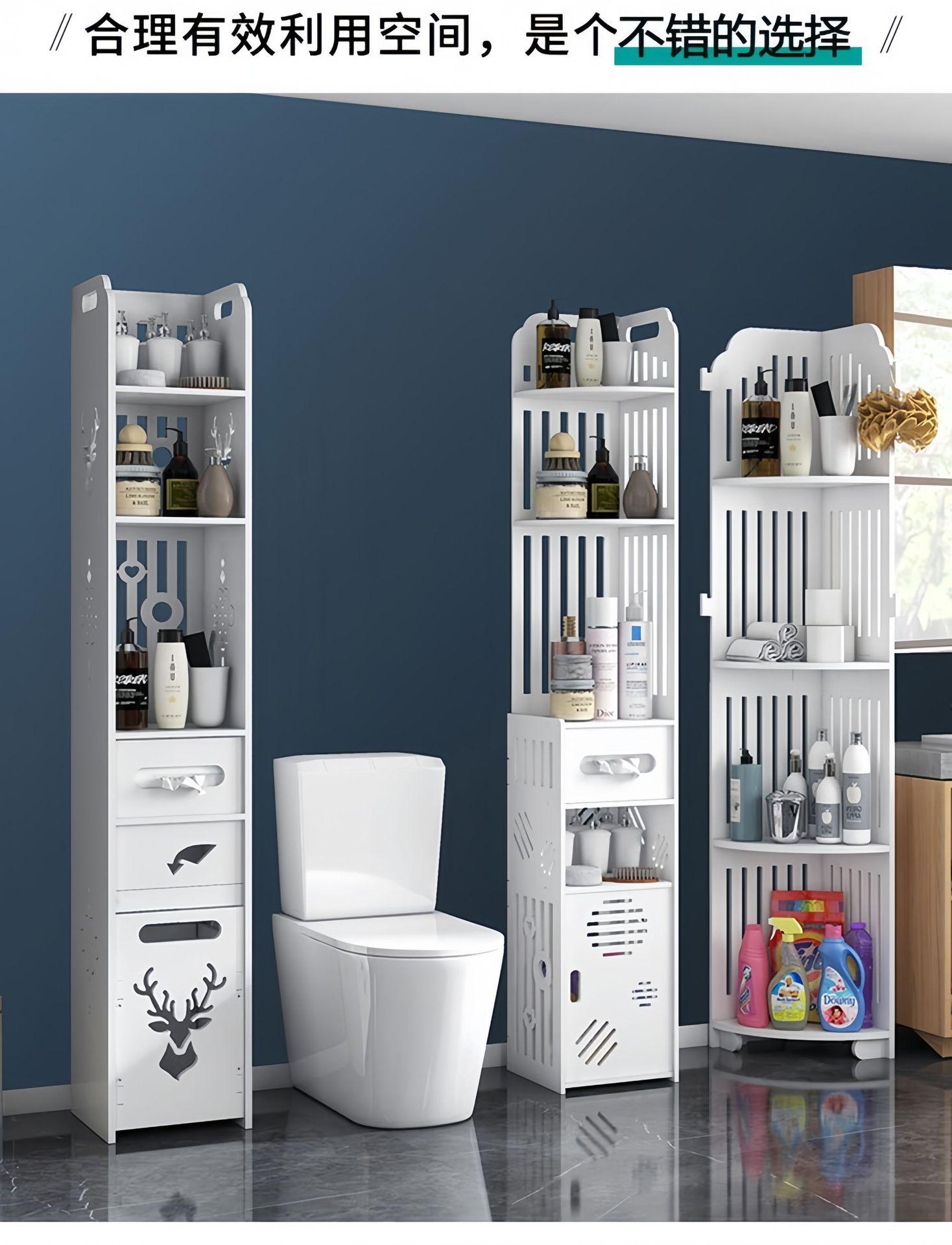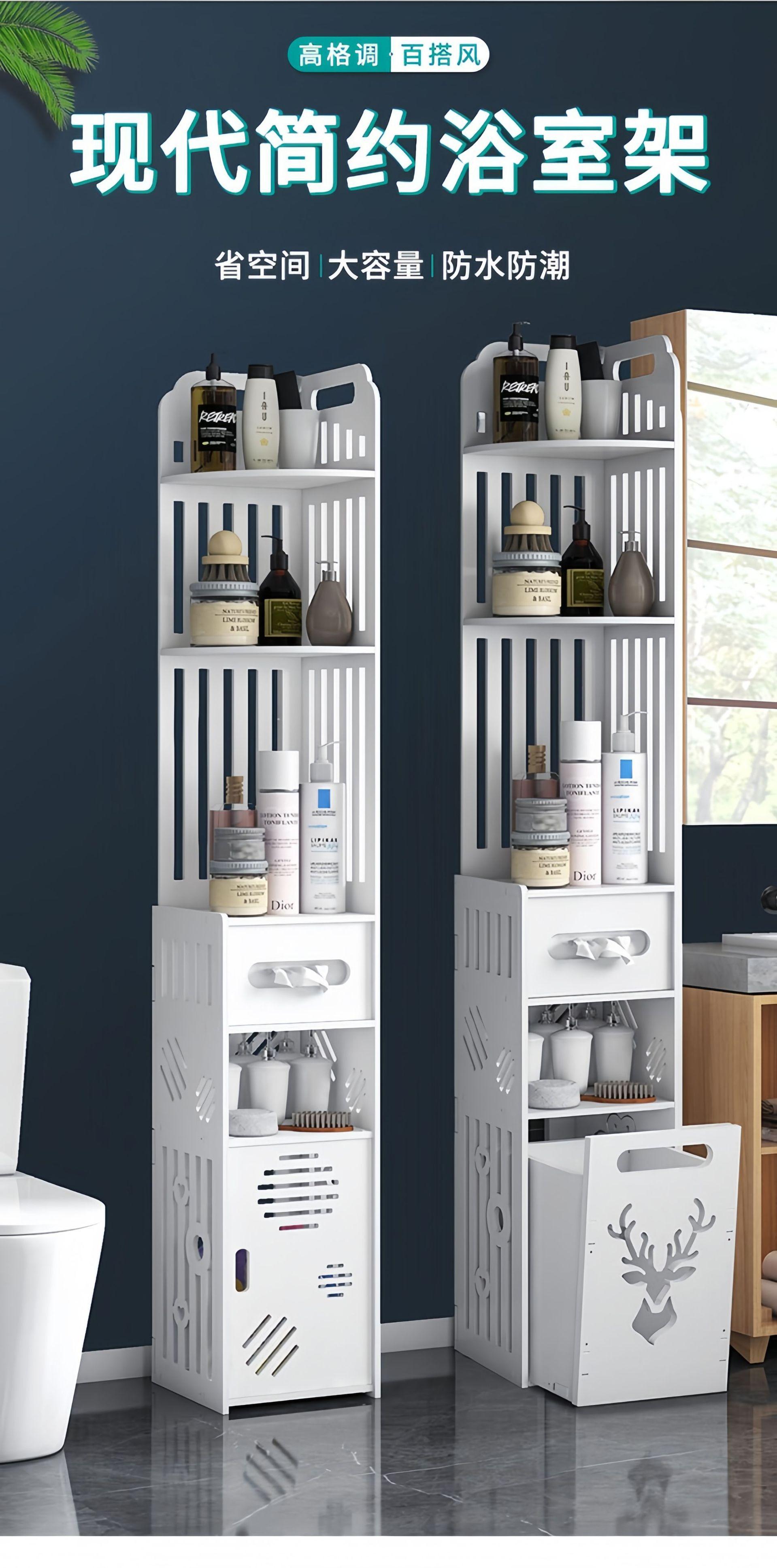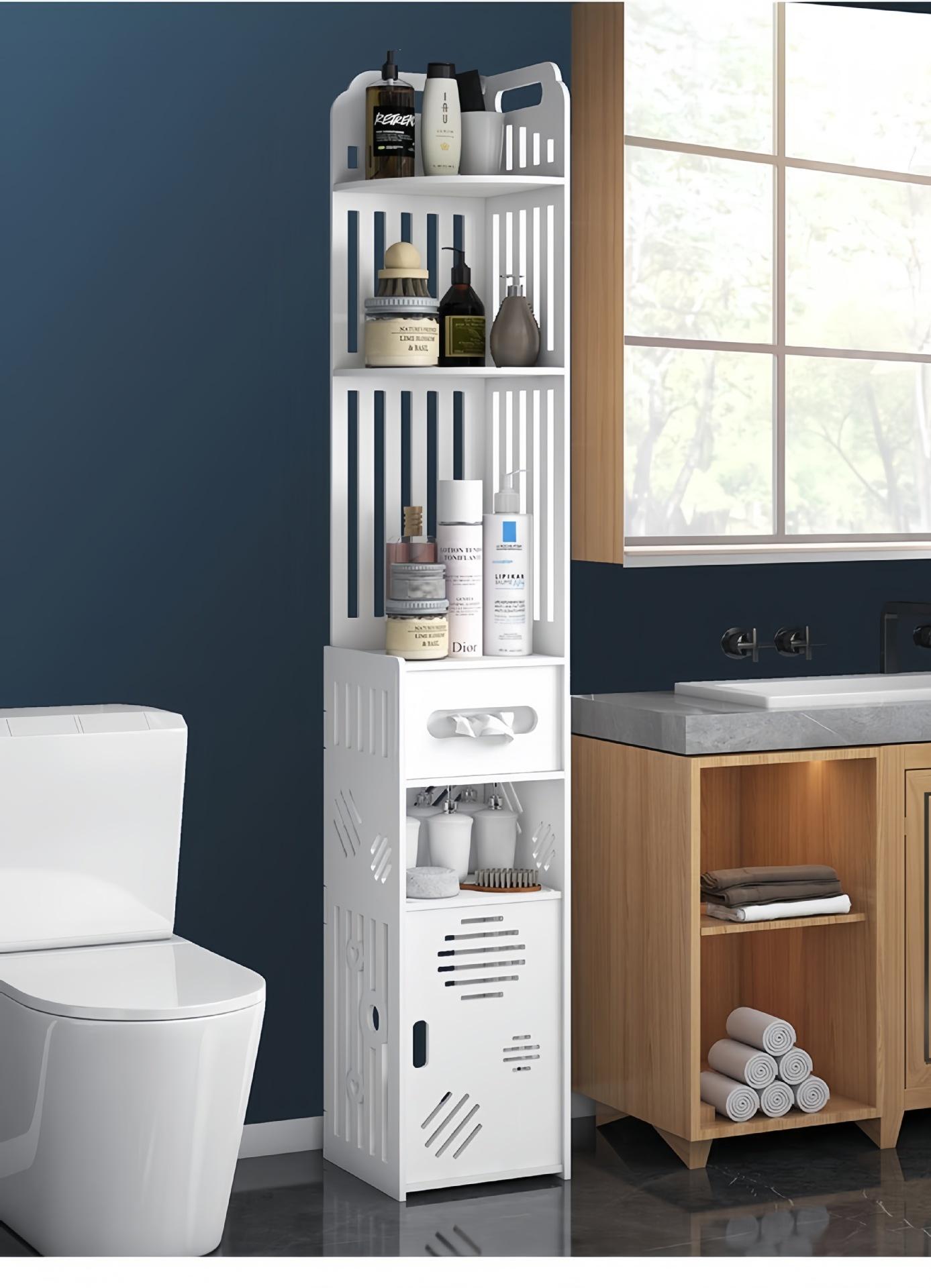 Estante de Almacenamiento para Baño, Gabinete Lateral de Piso para Inodoro, Gabinete de Almacenamiento para Esquina, Estante de Baño, Gabinete Estrecho de Almacenamiento Multicapa