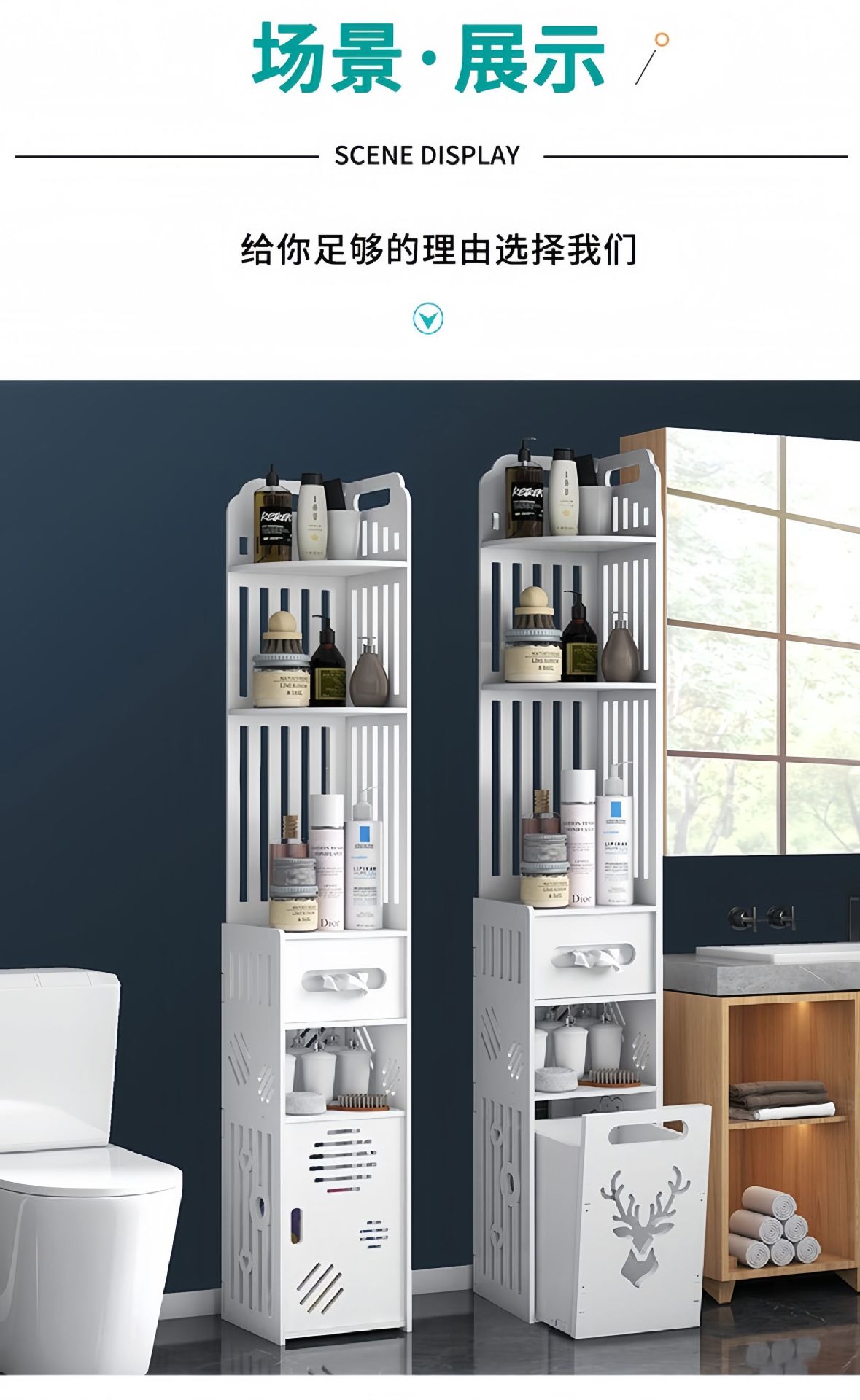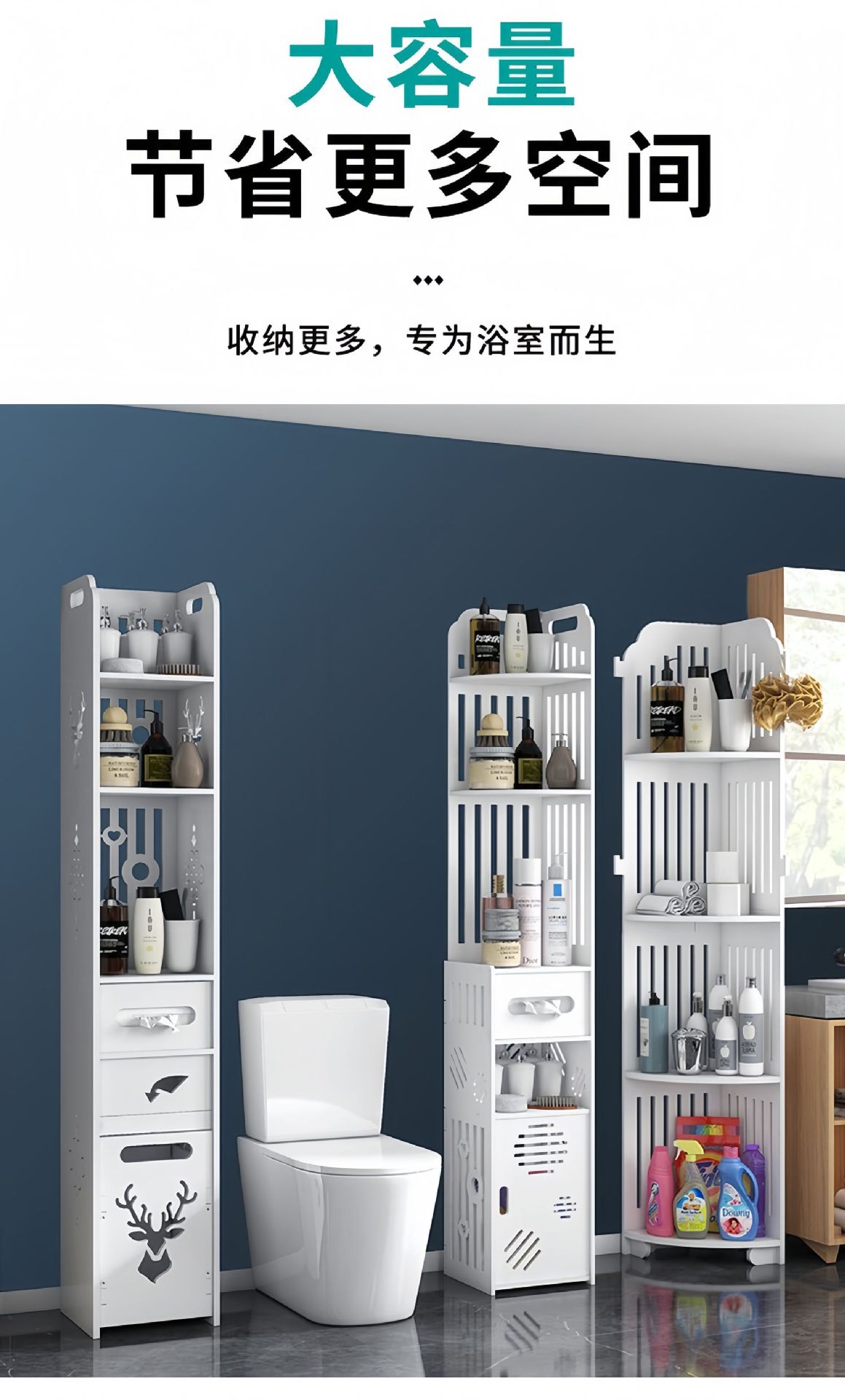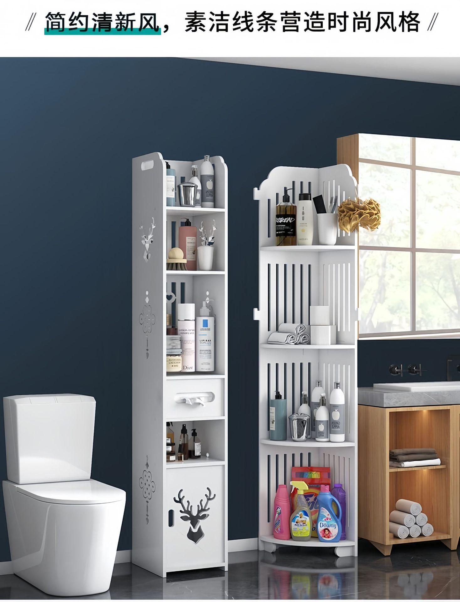 Estante de Almacenamiento para Baño, Gabinete Lateral de Piso para Inodoro, Gabinete de Almacenamiento para Esquina, Estante de Baño, Gabinete Estrecho de Almacenamiento Multicapa