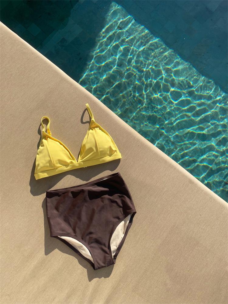 Versión coreana de traje de baño amarillo de una pieza para mujer al por mayor bikini de playa dividido sexy traje de baño sin espalda fábrica