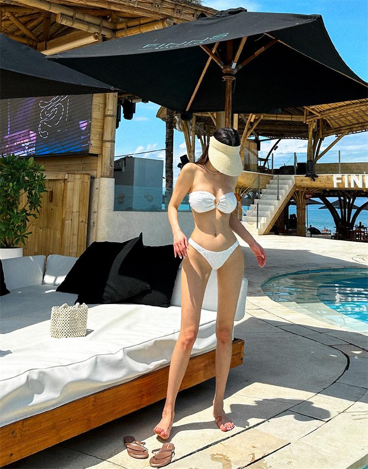 Verano Nuevo Sexy Bikini Blanco Puro Traje de Baño Bikini de Playa para Mujer Sexy Espalda Descubierta Dividido Traje de Baño Mujer