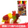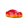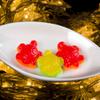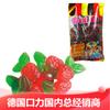 Lista de ingredientes: Jarabe de glucosa, azúcar blanca, aditivos alimentarios (gelatina, ácido cítrico, citrato de sodio, pectina, cera de carnauba, rojo allura, tartrazina, azul brillante), aceite vegetal, saborizante alimentario.
