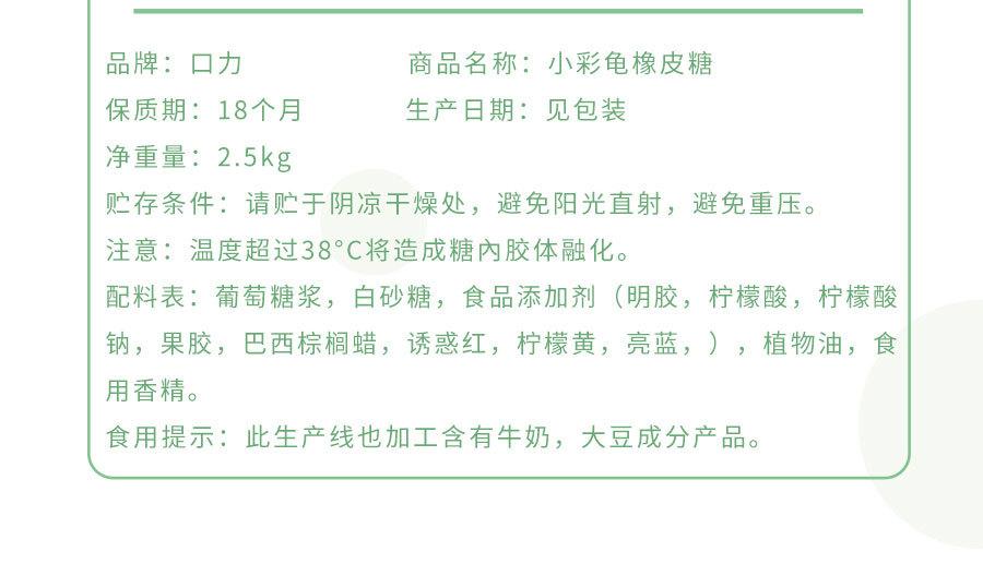 Condiciones de almacenamiento: Por favor, almacenar en un lugar fresco y seco, evitar la luz solar directa y evitar la presión excesiva. Nota: Las temperaturas superiores a 38°C provocarán que el coloide azucarado se derrita.