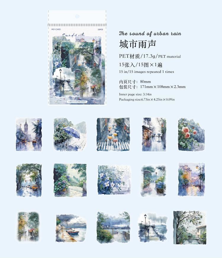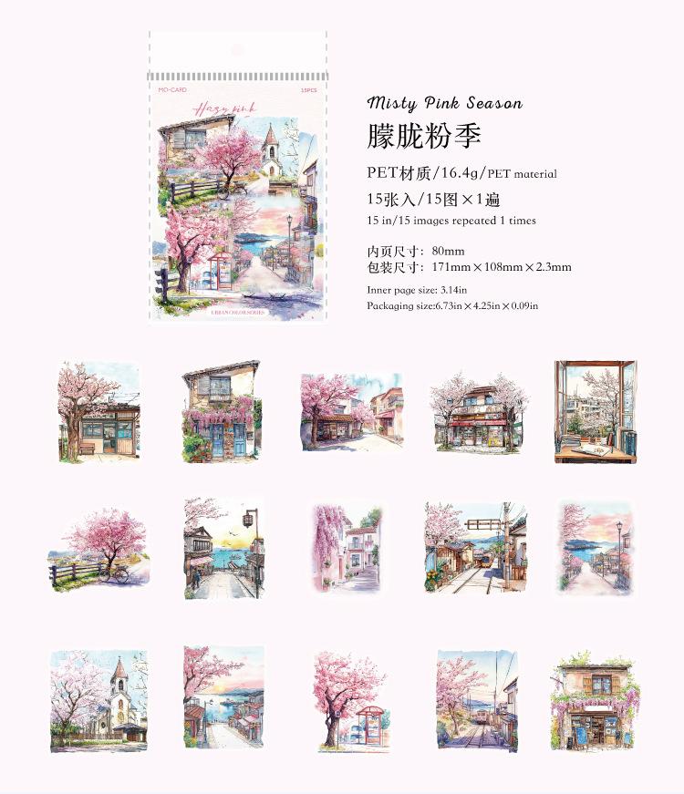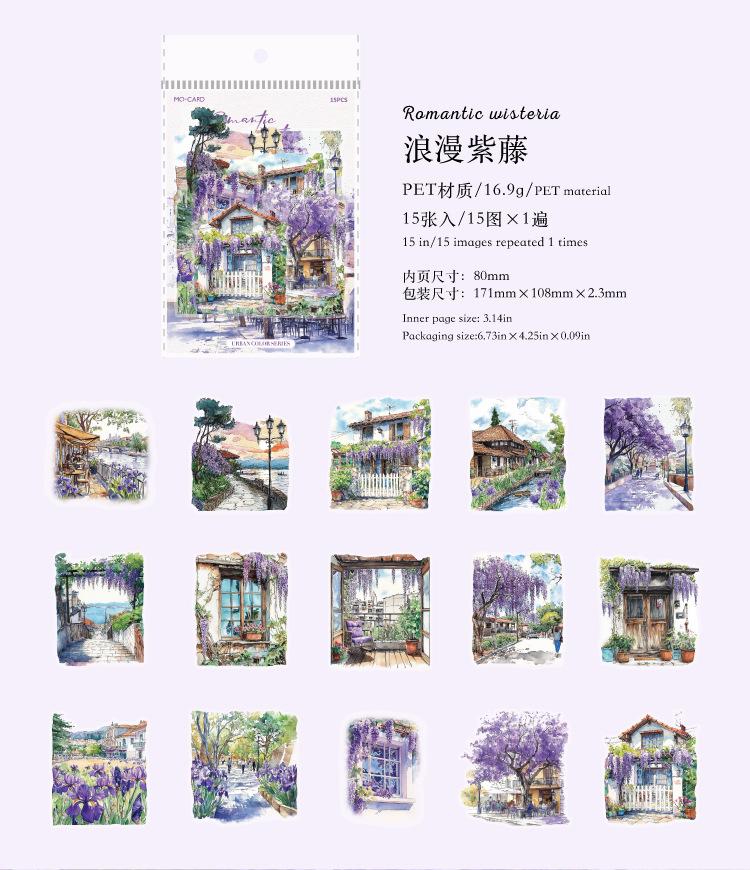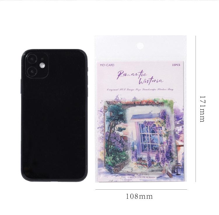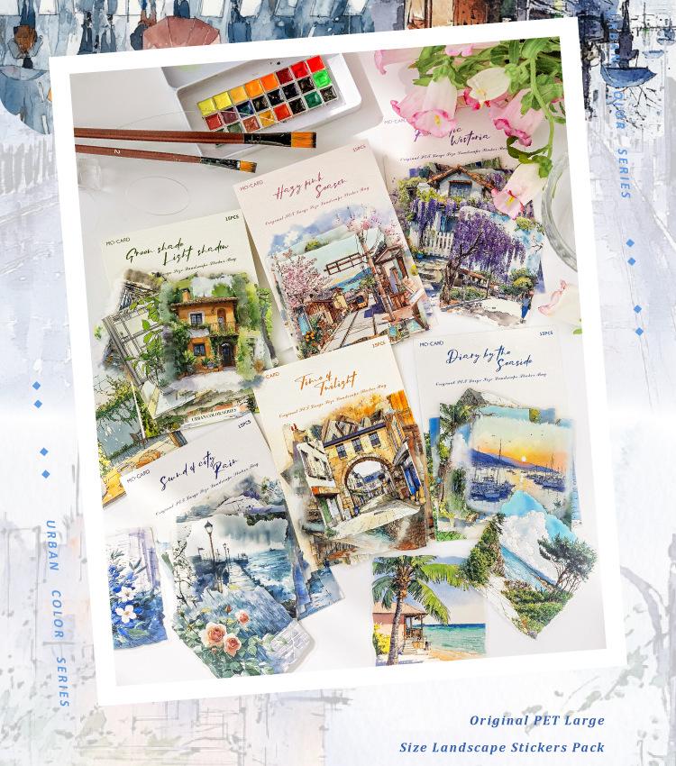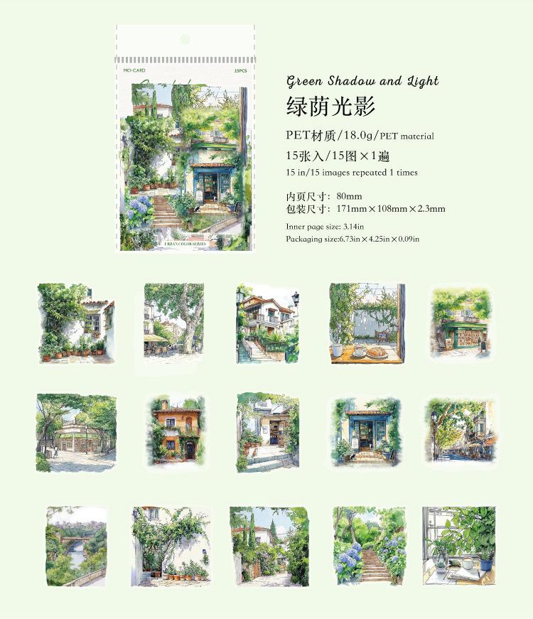 Paquete de Stickers Momo a Largo Plazo Transfronterizo Serie Color Ciudad Manual de Paisajismo Urbano Stickers Decorativos DIY 15 Hojas 6 Estilos