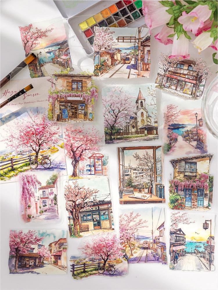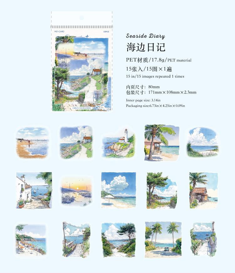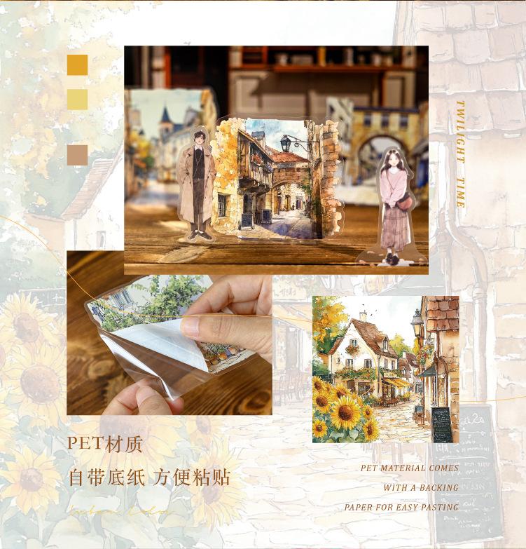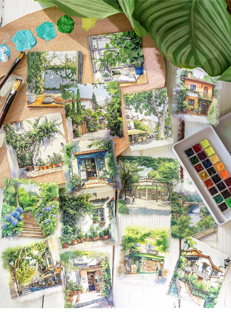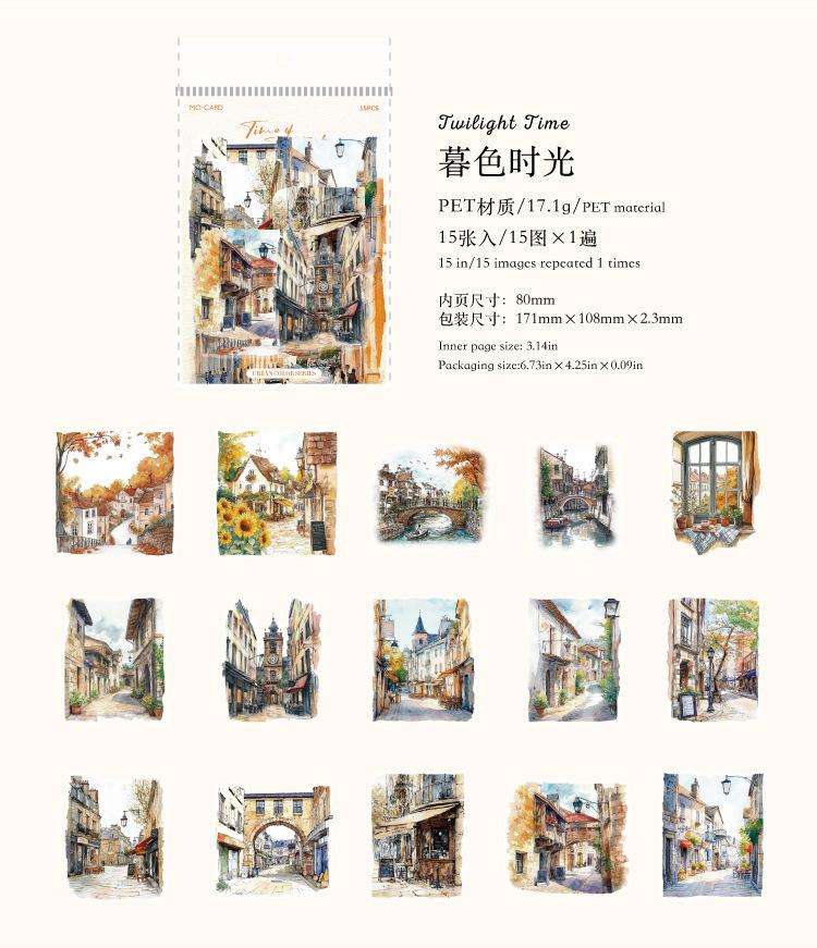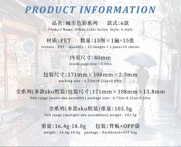 Paquete de Stickers Momo a Largo Plazo Transfronterizo Serie Color Ciudad Manual de Paisajismo Urbano Stickers Decorativos DIY 15 Hojas 6 Estilos