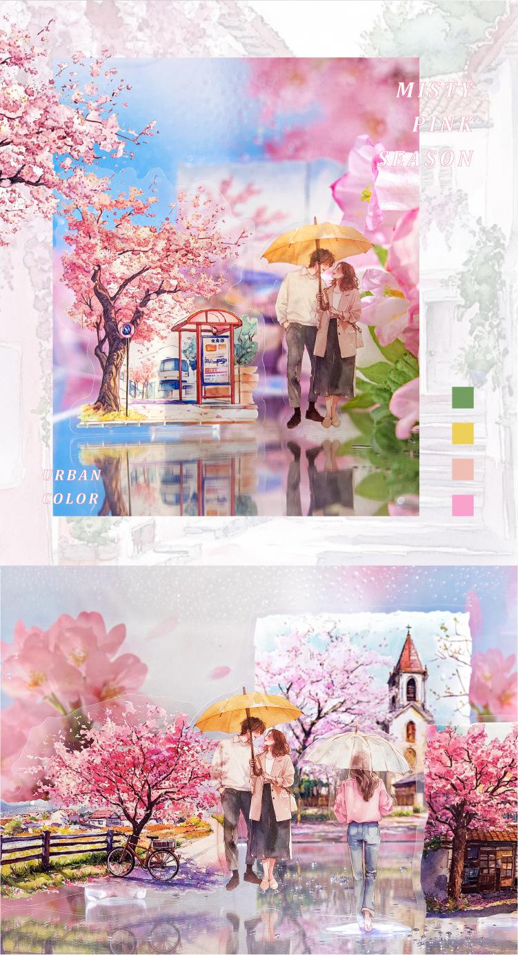 Seaside diary, Green shade light and shadow, Twilight time, Romantic wisteria, Hazy pink season, City rain sound
