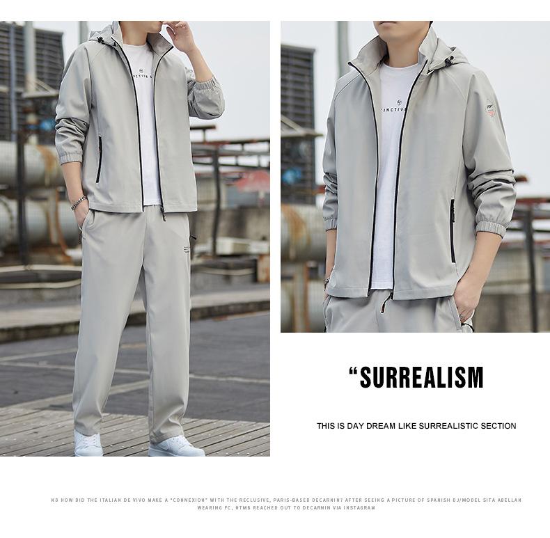 Traje deportivo para hombre Primavera y Otoño Nueva Chaqueta Abrigo para hombre Colocación Pantalones Casuales Conjunto de dos piezas Guapo Tendencia para hombre