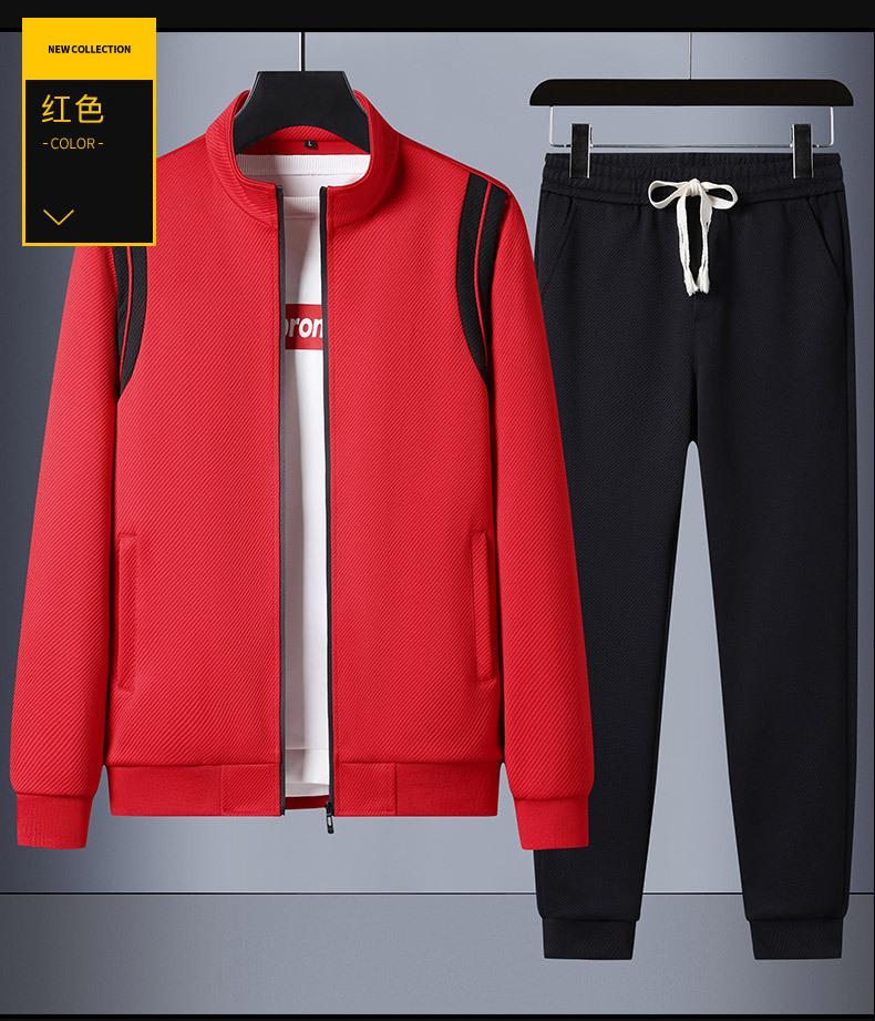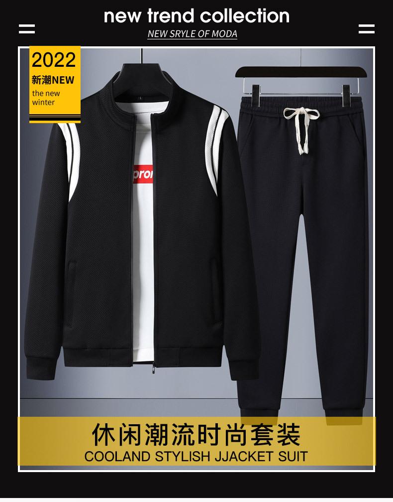 Ropa Deportiva de Moda Otoñal Traje de Talla Grande para Hombre Cárdigan Sudadera Casual de Manga Larga Traje Deportivo Casual de Dos Piezas