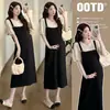 Maternidad 2025 Verano Nuevo Seda de Hielo Tejido Rayado Costuras Gasa Falso Dos Piezas Talla Grande Vestido para Mujeres Embarazadas