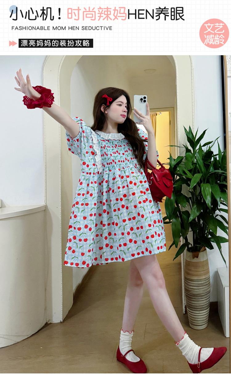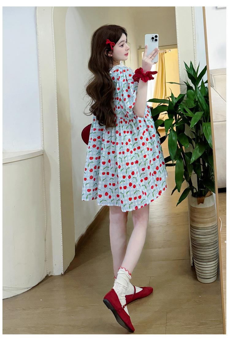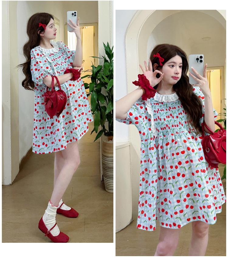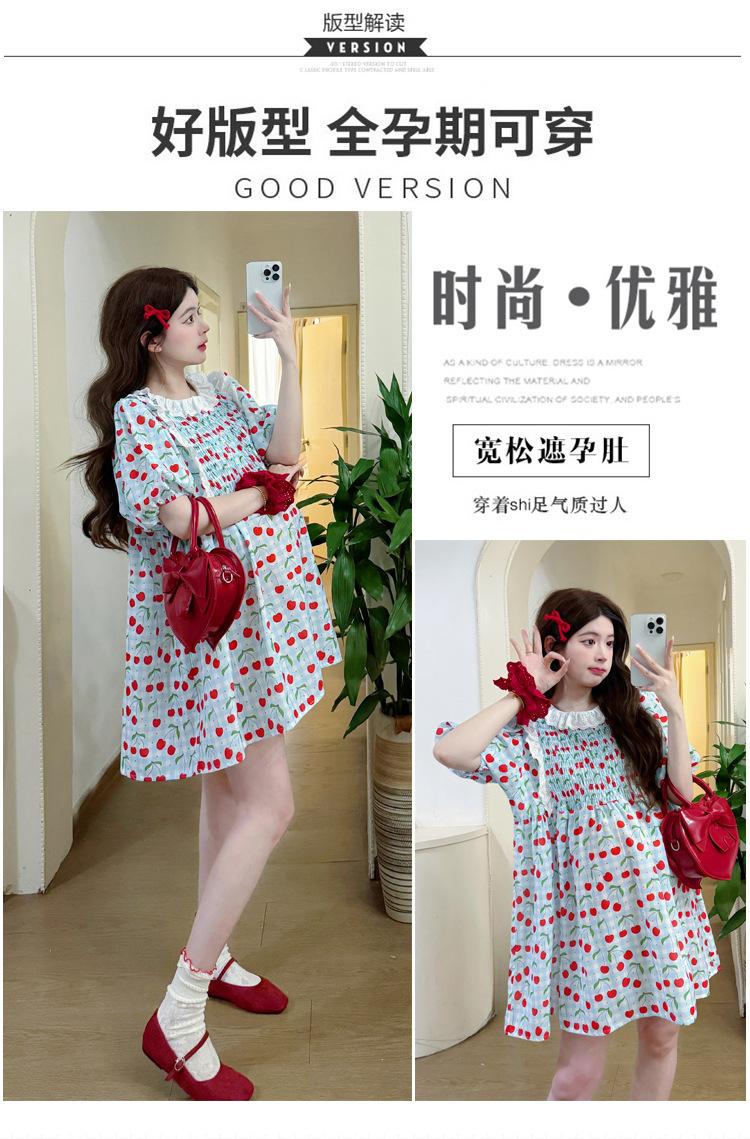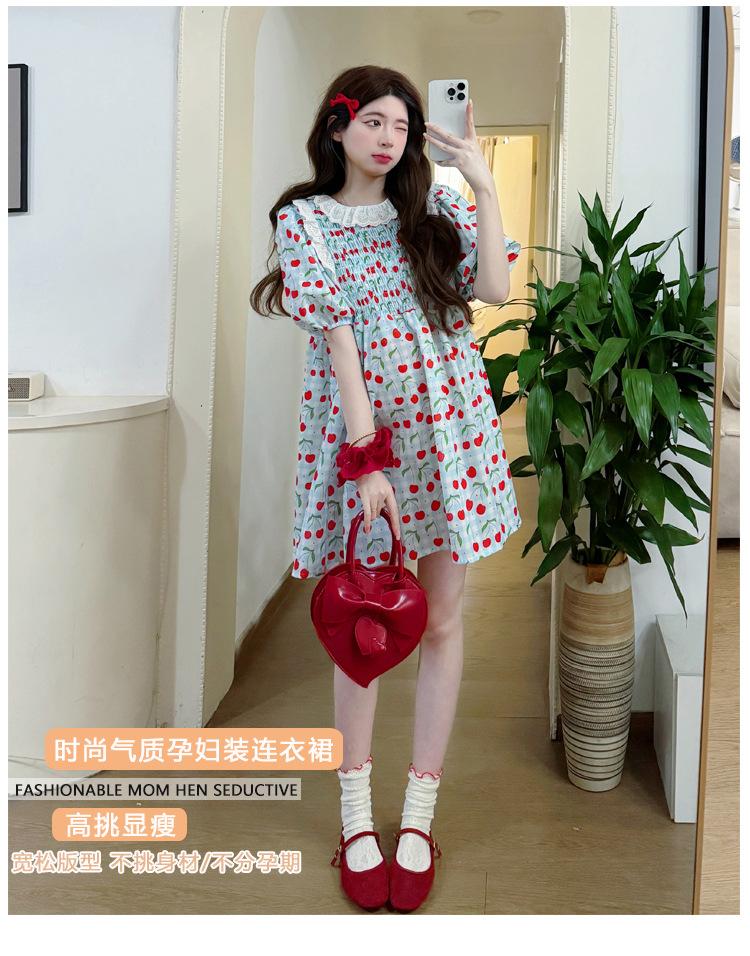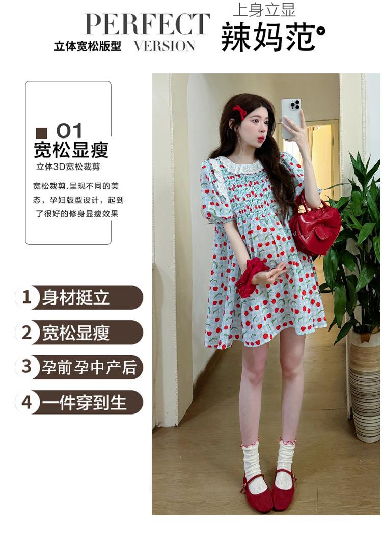 Ropa de Maternidad 2025 Verano Nuevo Estilo Coreano Dulce Encaje Floral Cuello Reductor de Edad Vestido Holgado de Maternidad