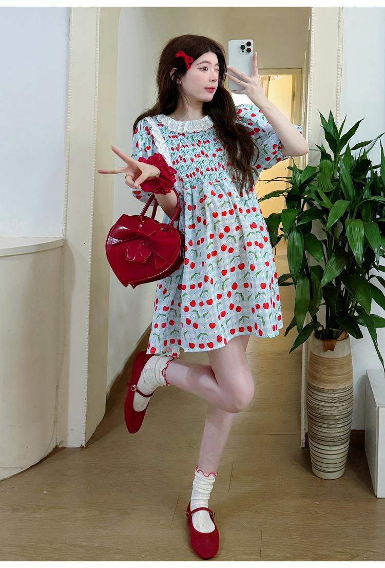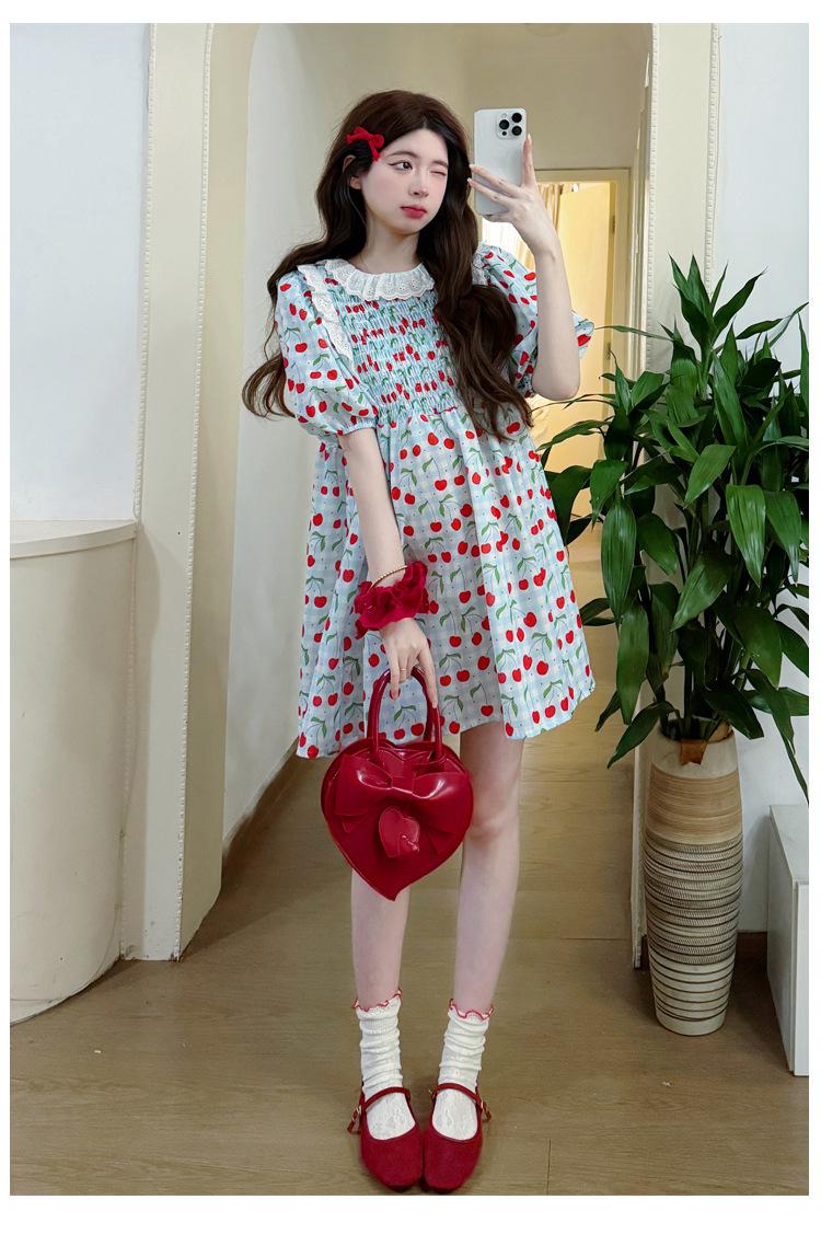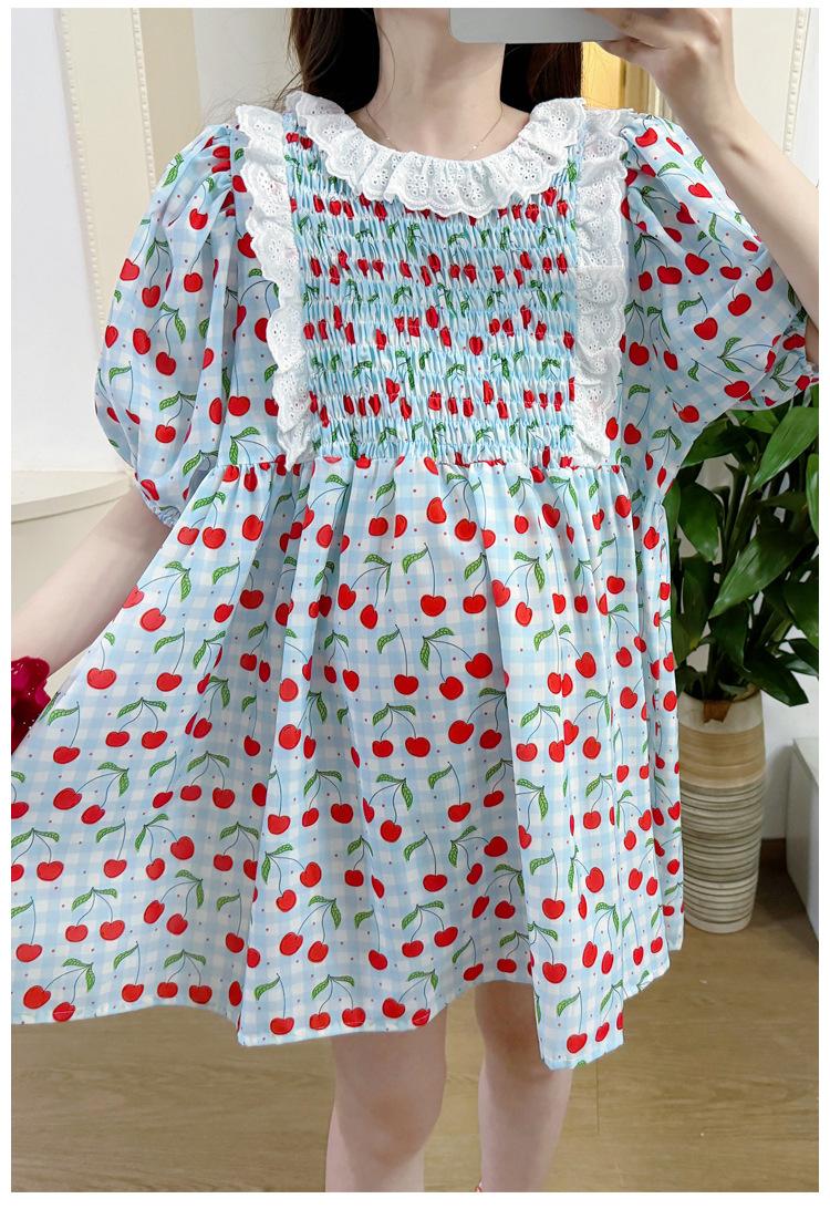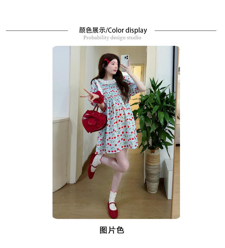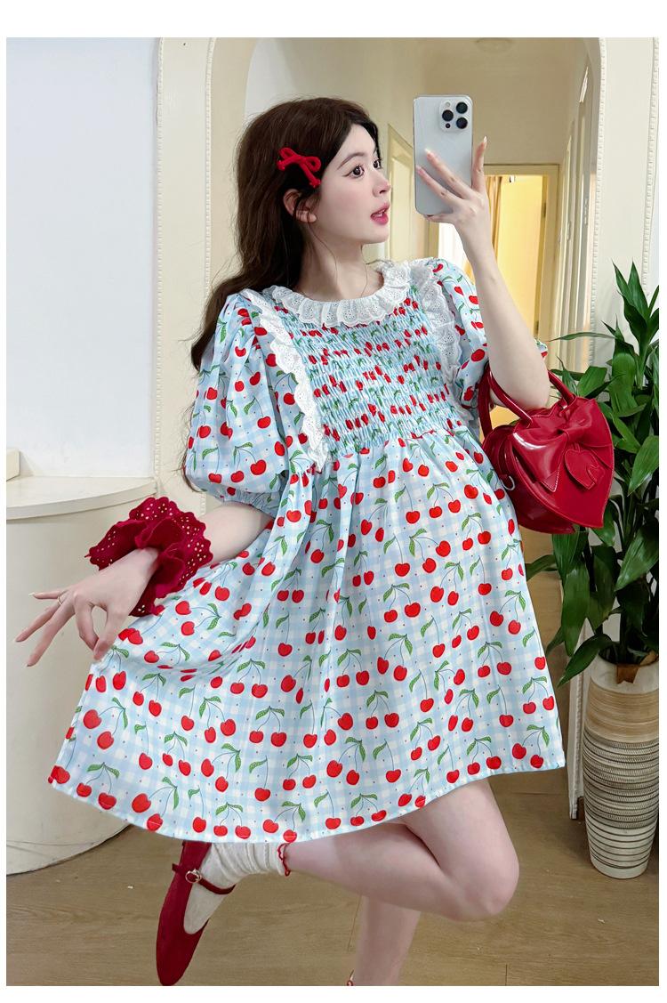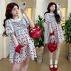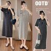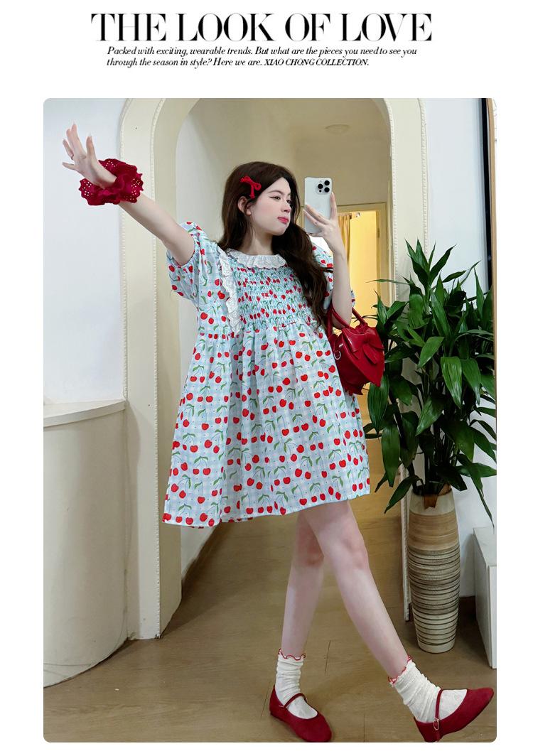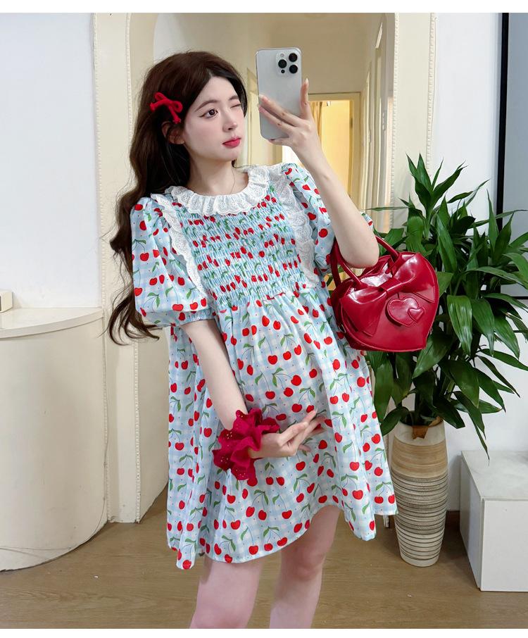 Ropa de Maternidad 2025 Verano Nuevo Estilo Coreano Dulce Encaje Floral Cuello Reductor de Edad Vestido Holgado de Maternidad