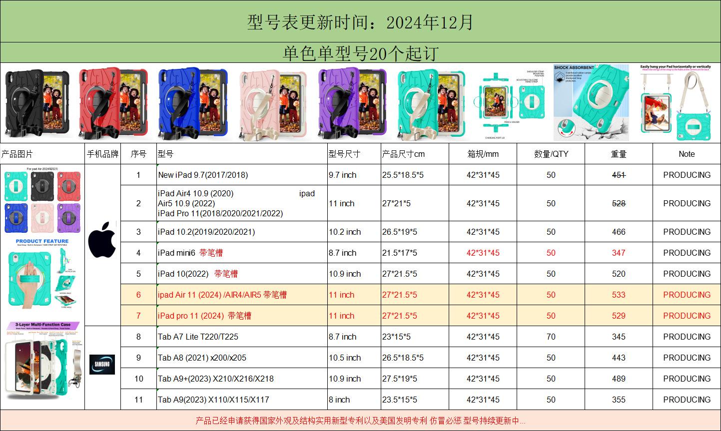 Ipad air 11 (2024) /air4/air5 with pen tray including shoulder strap