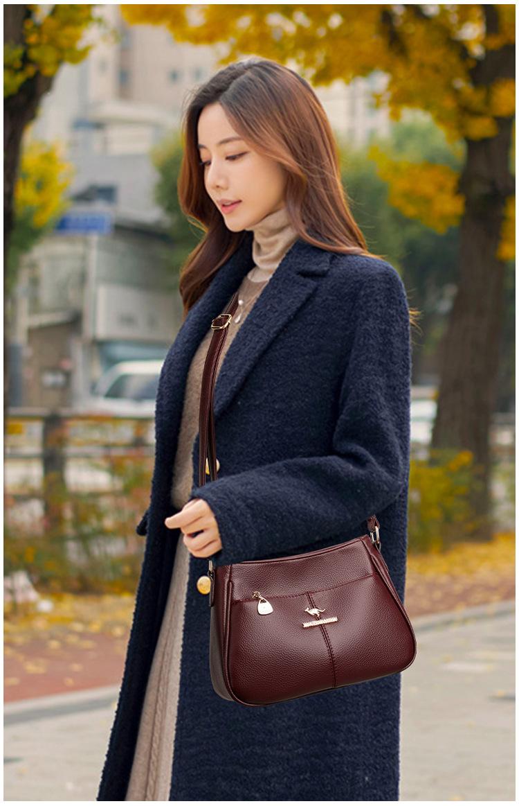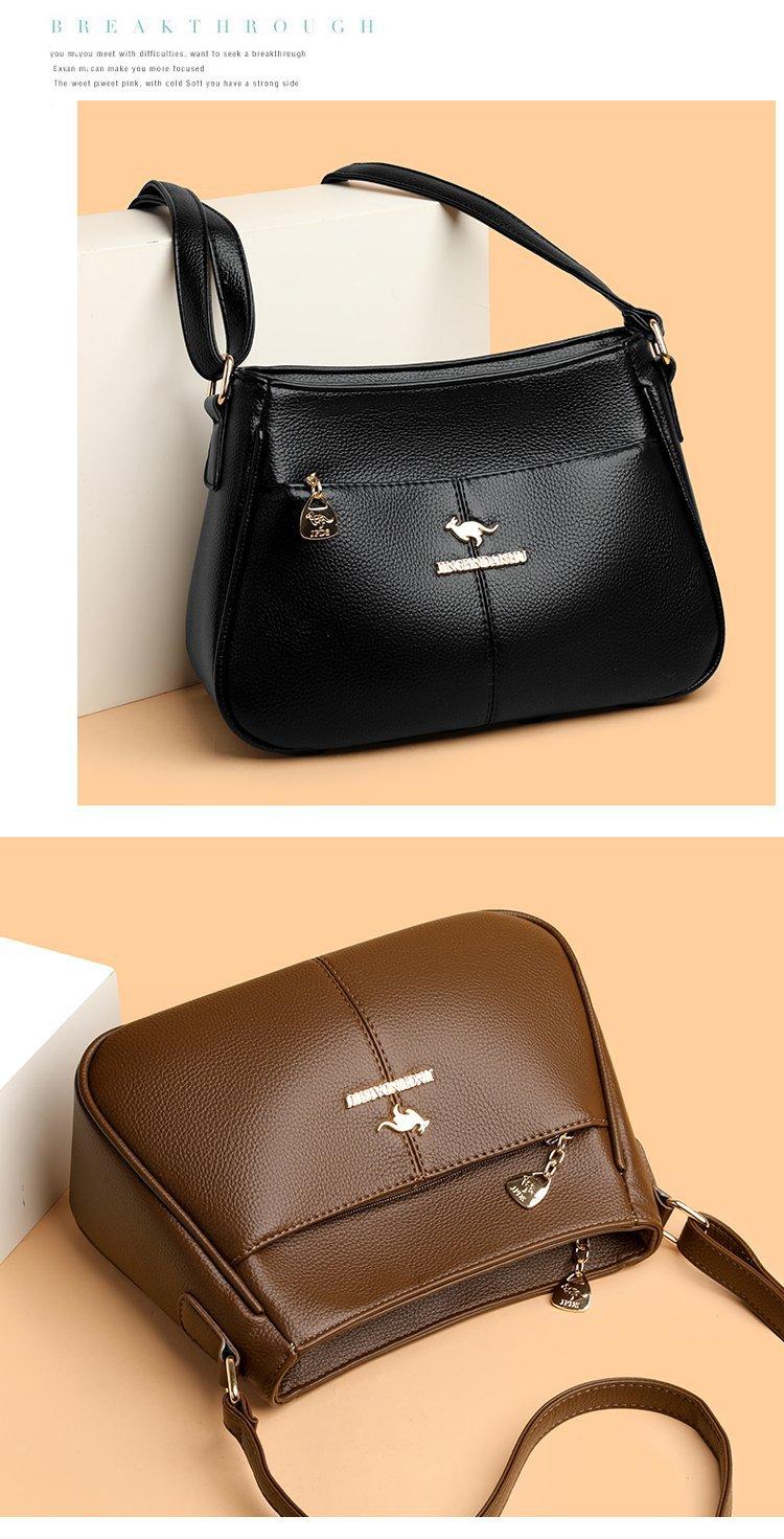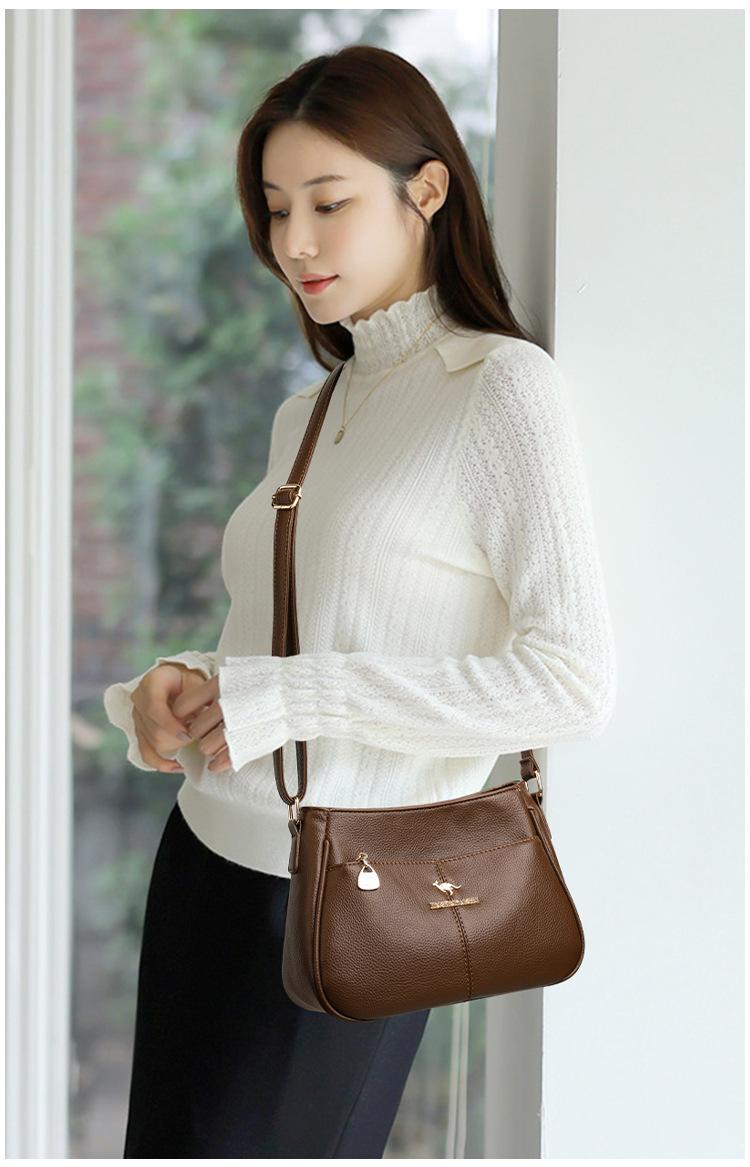 Bolso de Mujer de Cuero Suave 2025 Nueva Moda Simple Bolso de Hombro Cruzado Bolso para Madre de Mediana Edad Gran Capacidad Bolso de Hombro Moderno