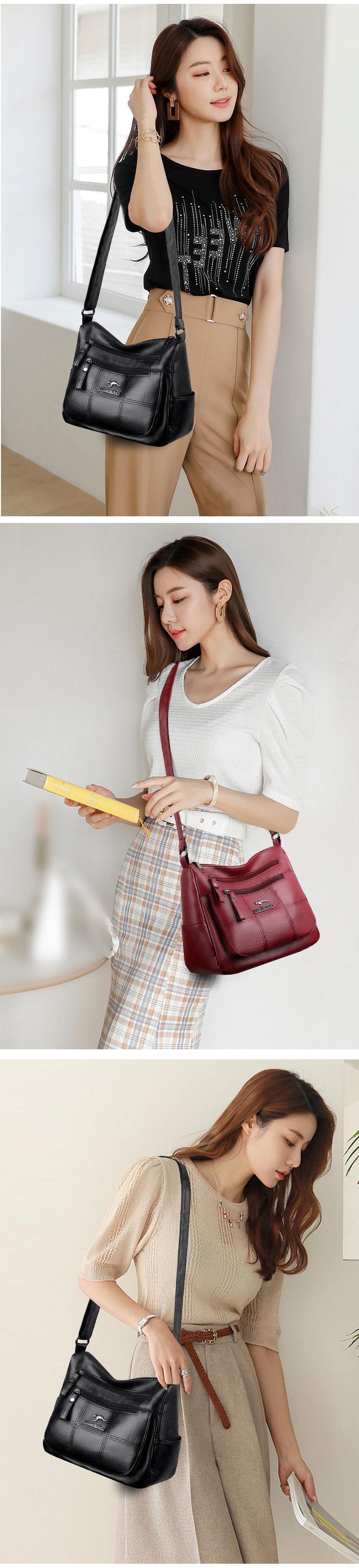 Bolso de Cuero Suave Multicapa para Mujer 2025 Nueva Moda Versátil Bolso para Madre de Mediana Edad y Anciana Gran Capacidad Bandolera de un Solo Hombro para Mujer